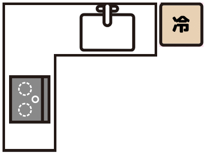 L型キッチンとは、部屋の角を利用してL字にシンクやコンロを配置しているキッチン形状で、比較的広くキッチンスペースを取れる物件に多い作りです。
