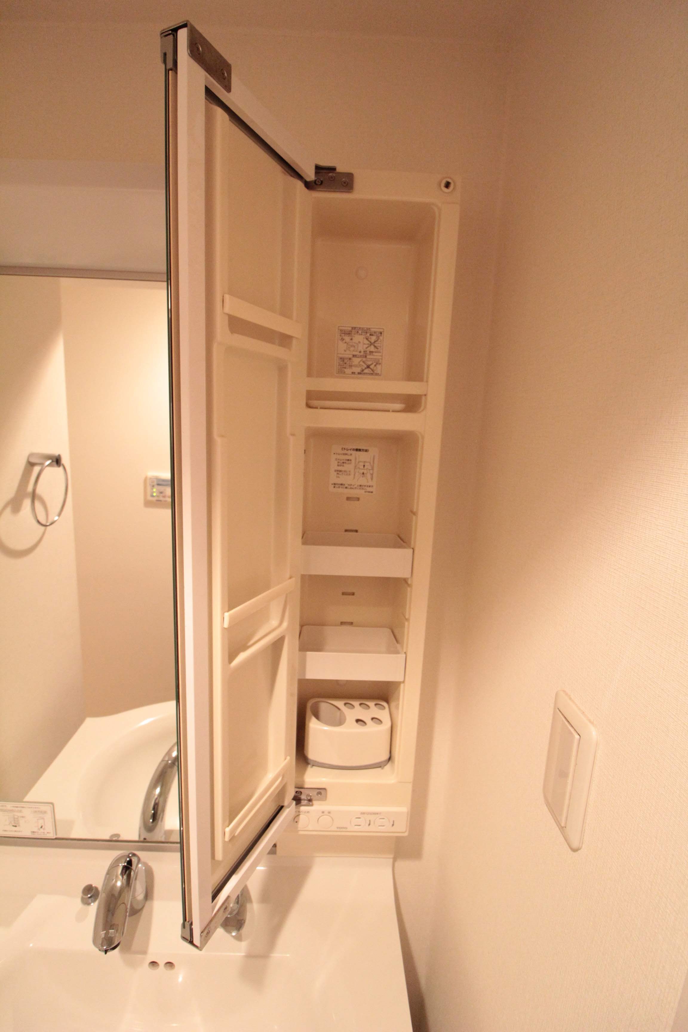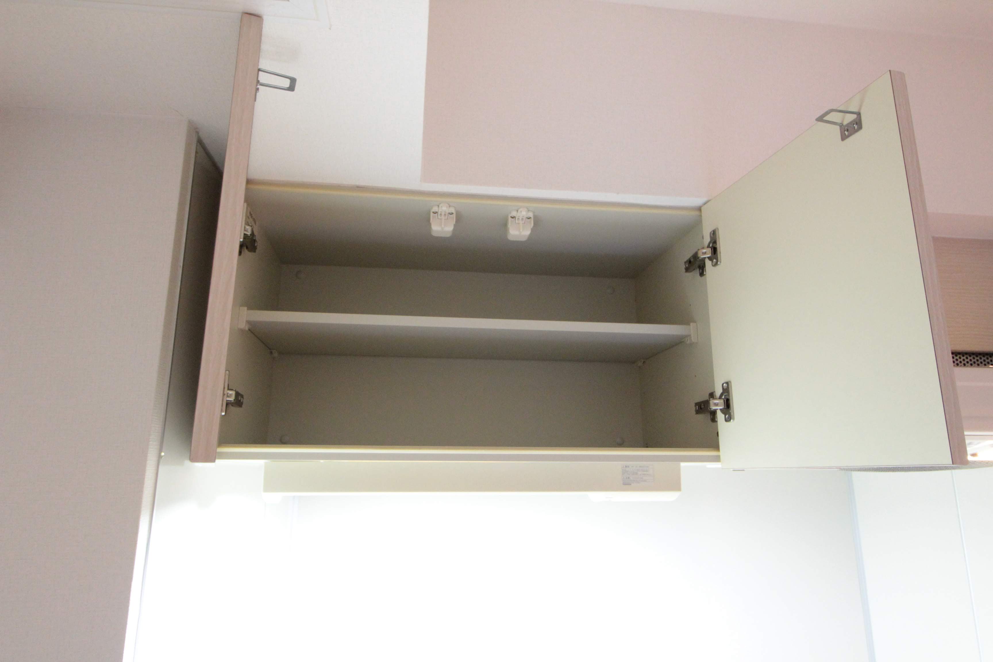 右側の収納棚は敷居が多く、小物もしっかりと収納できます。