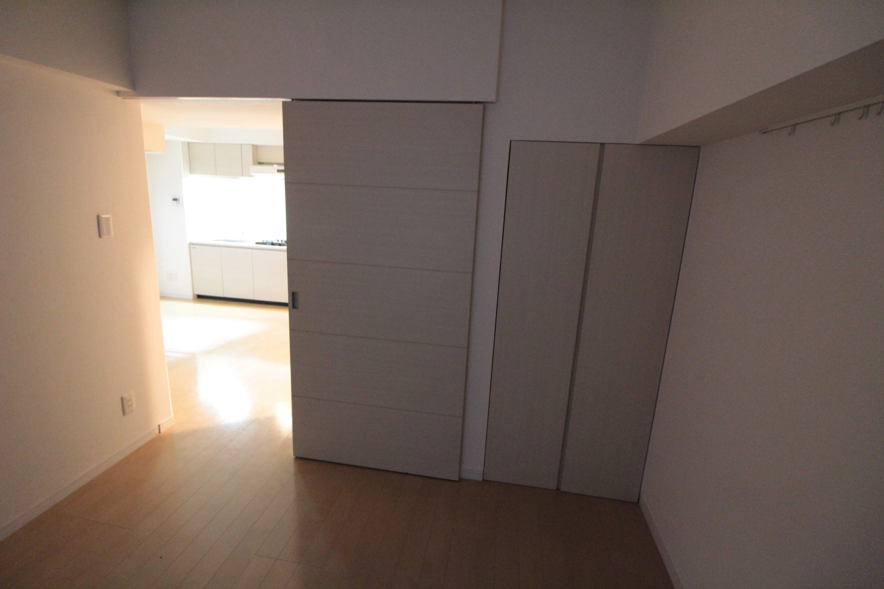 寝室はキッチンとの間に仕切りがないように見えますが、スライドドアがあります。