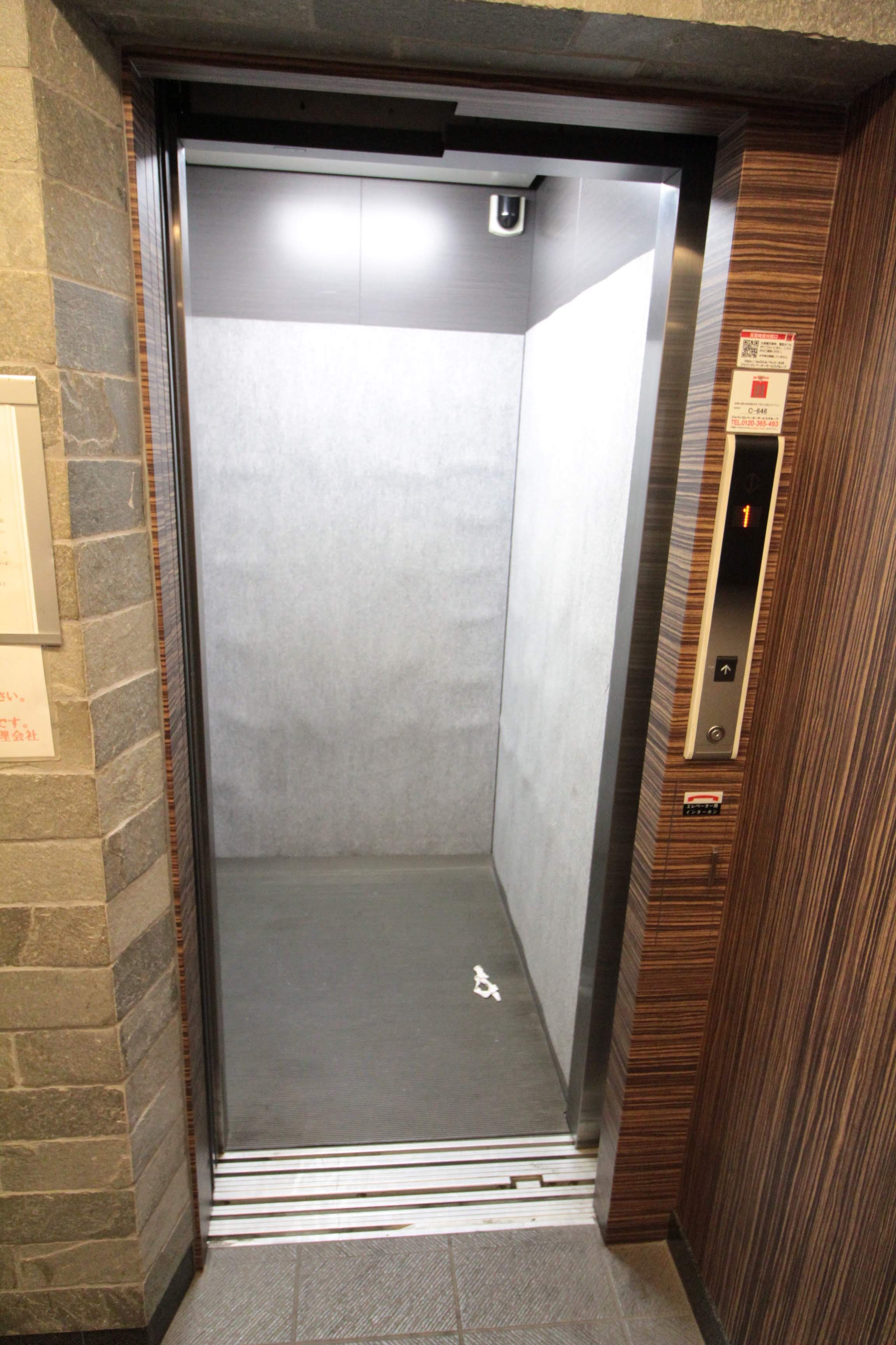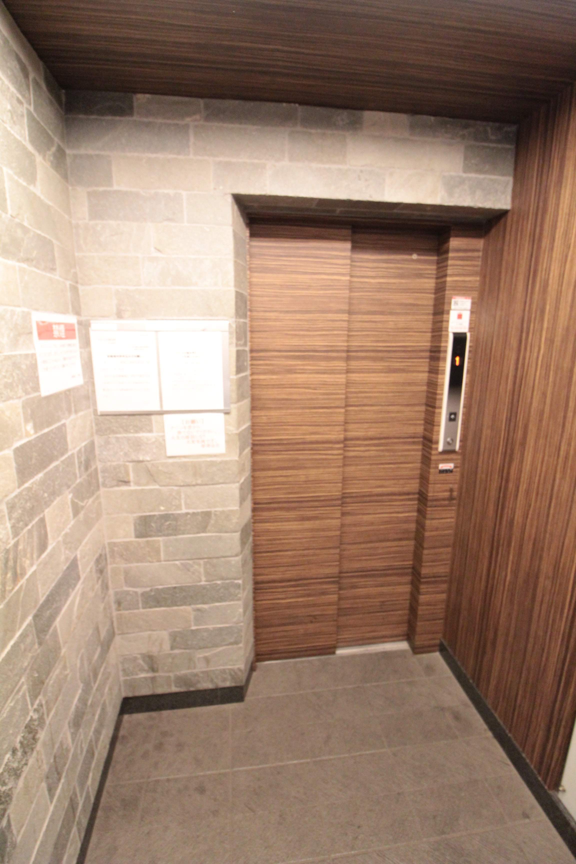 エレベーターも木目のパネルと併せた面白いデザイン。