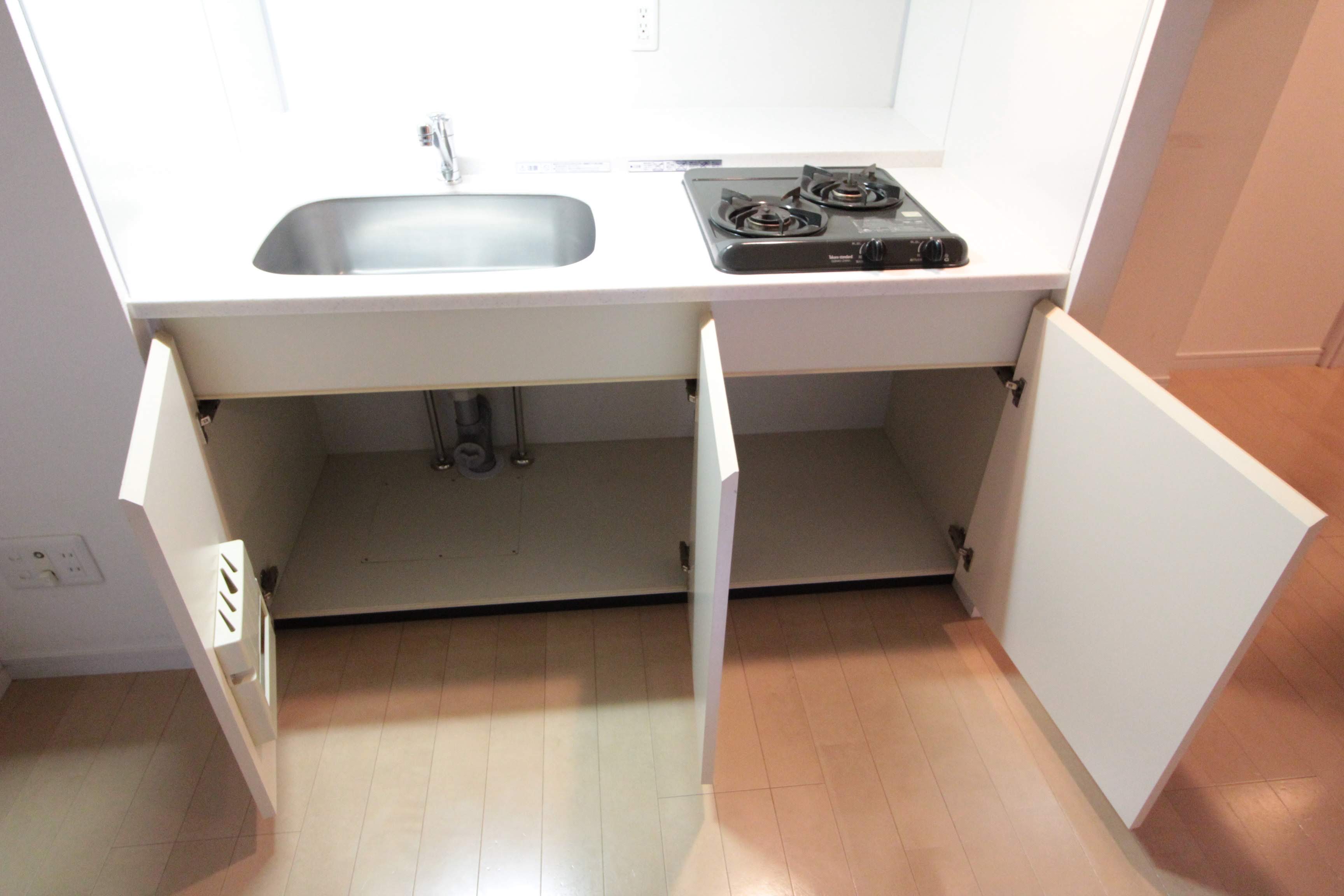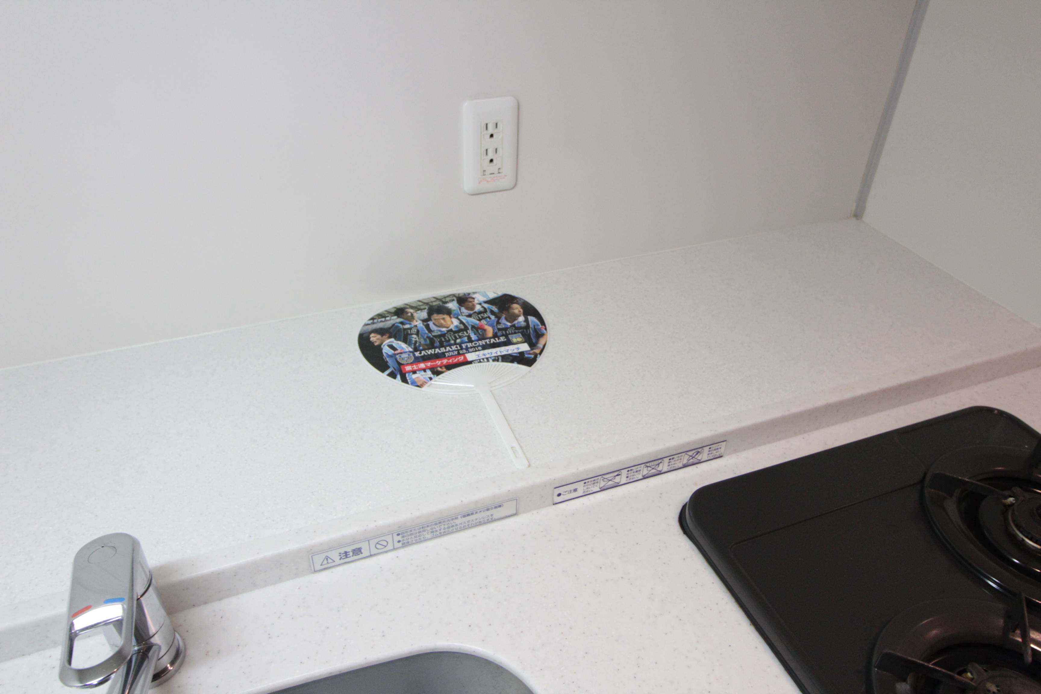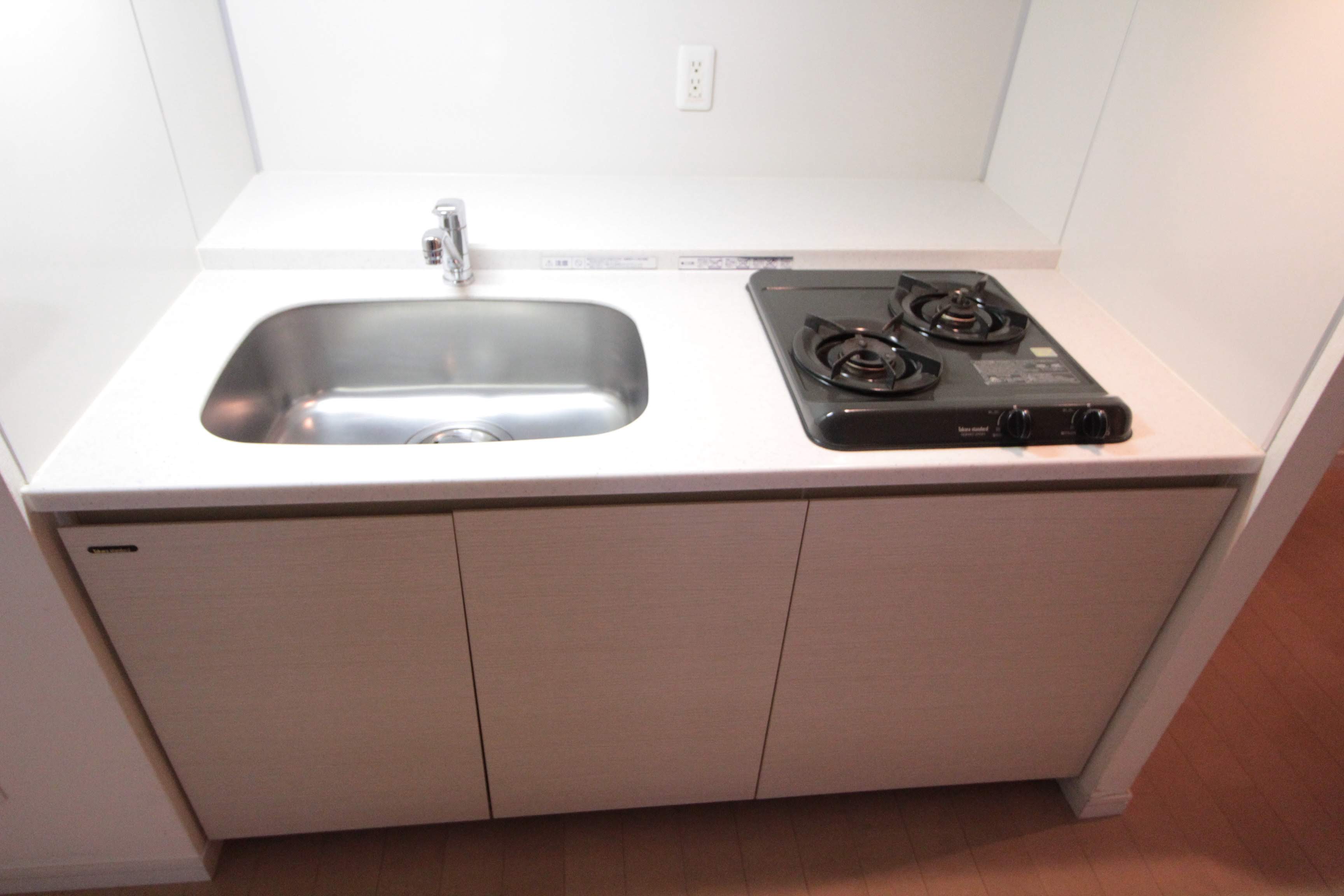 コンロこそ2口と普通ですが、広い洗い場と作業スペースがウリです。