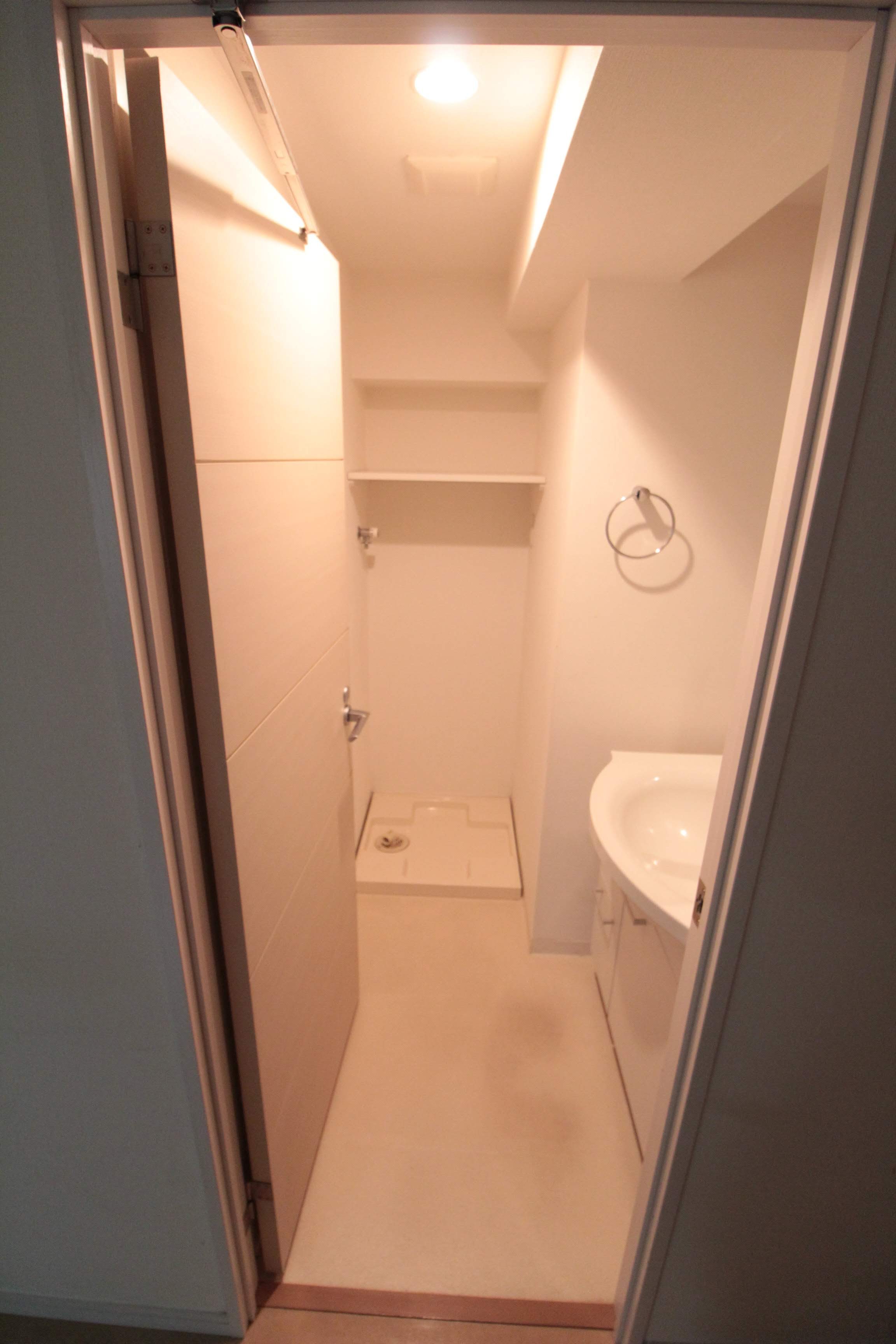 洗面台も大きく、手洗いでの洗濯もできそう。