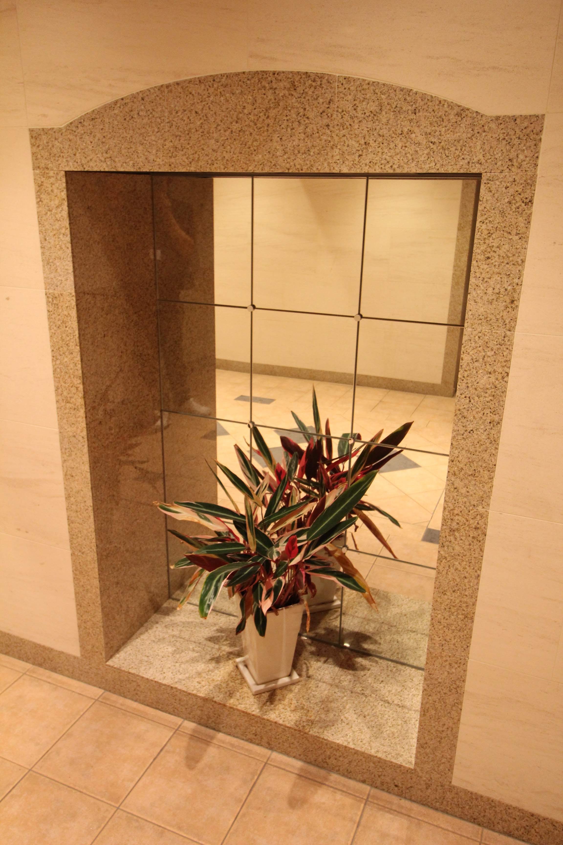 植物を使った癒しのディスプレイは、エレベーターを待つ時の煩わしさを解消してくれます。