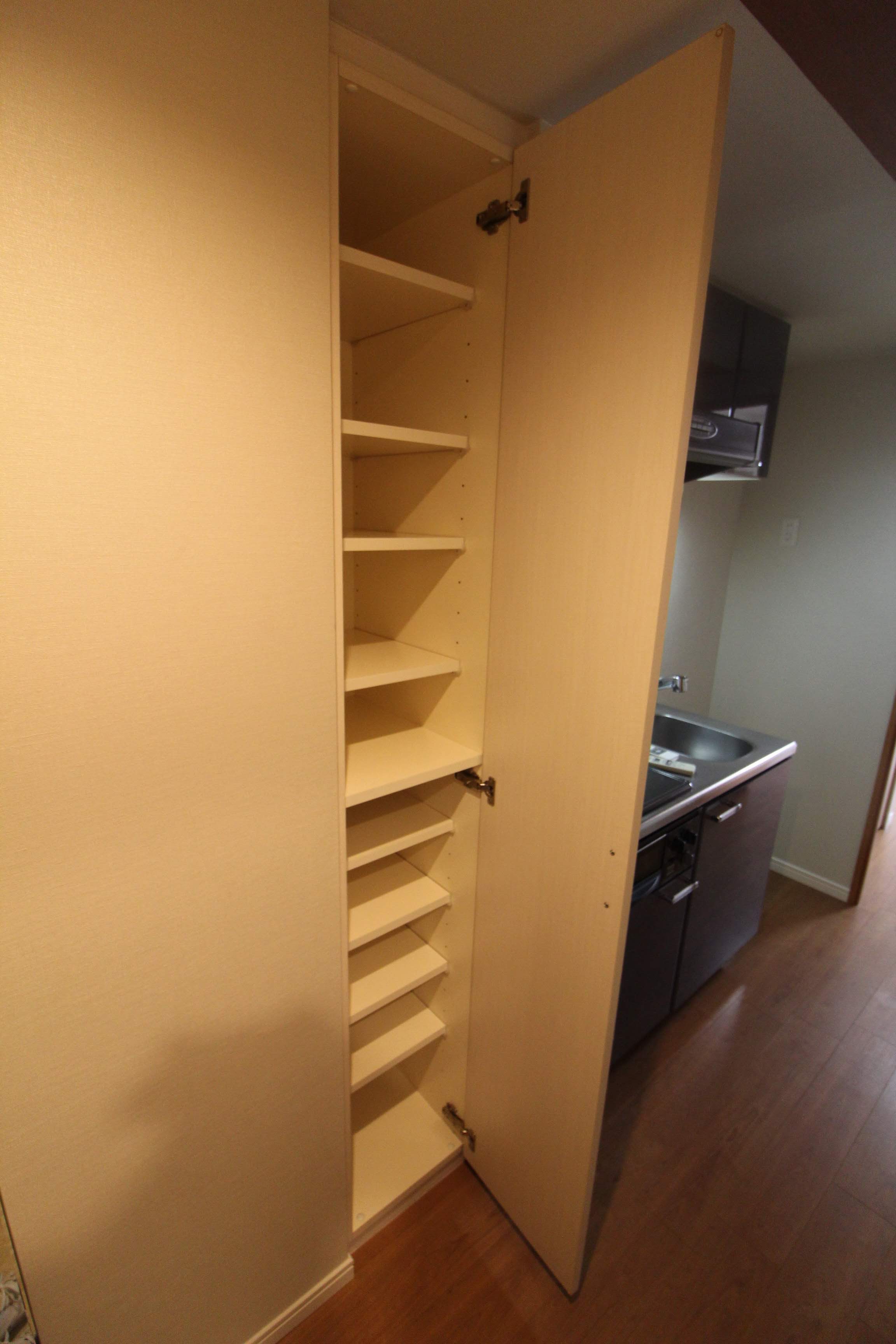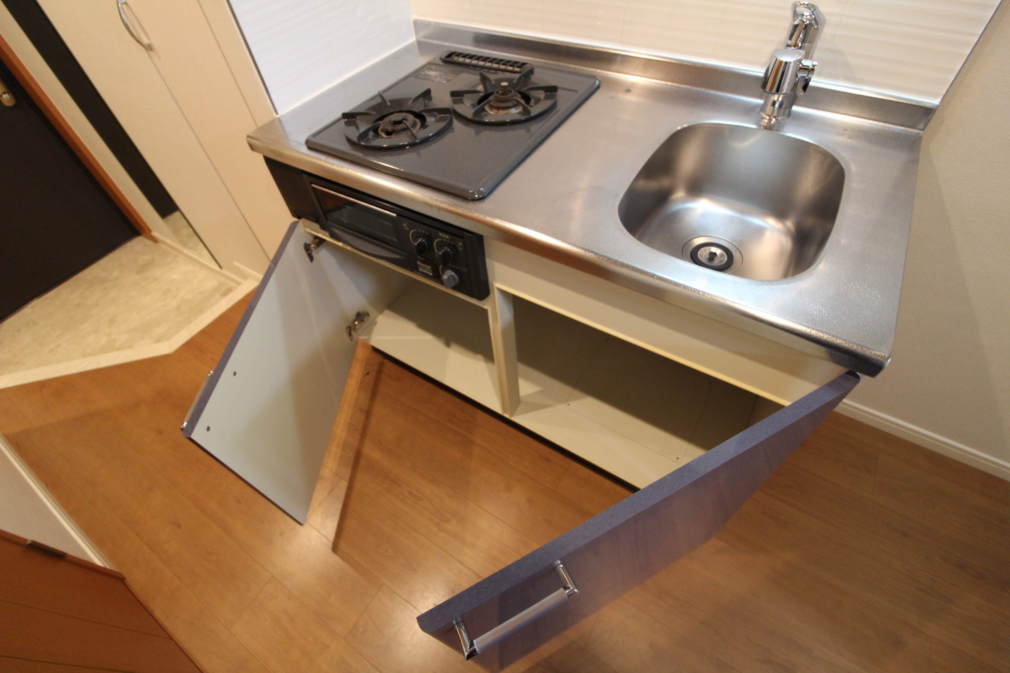 収納には仕切りが無いので、大きめの鍋やフライパンなどがしまえます。
