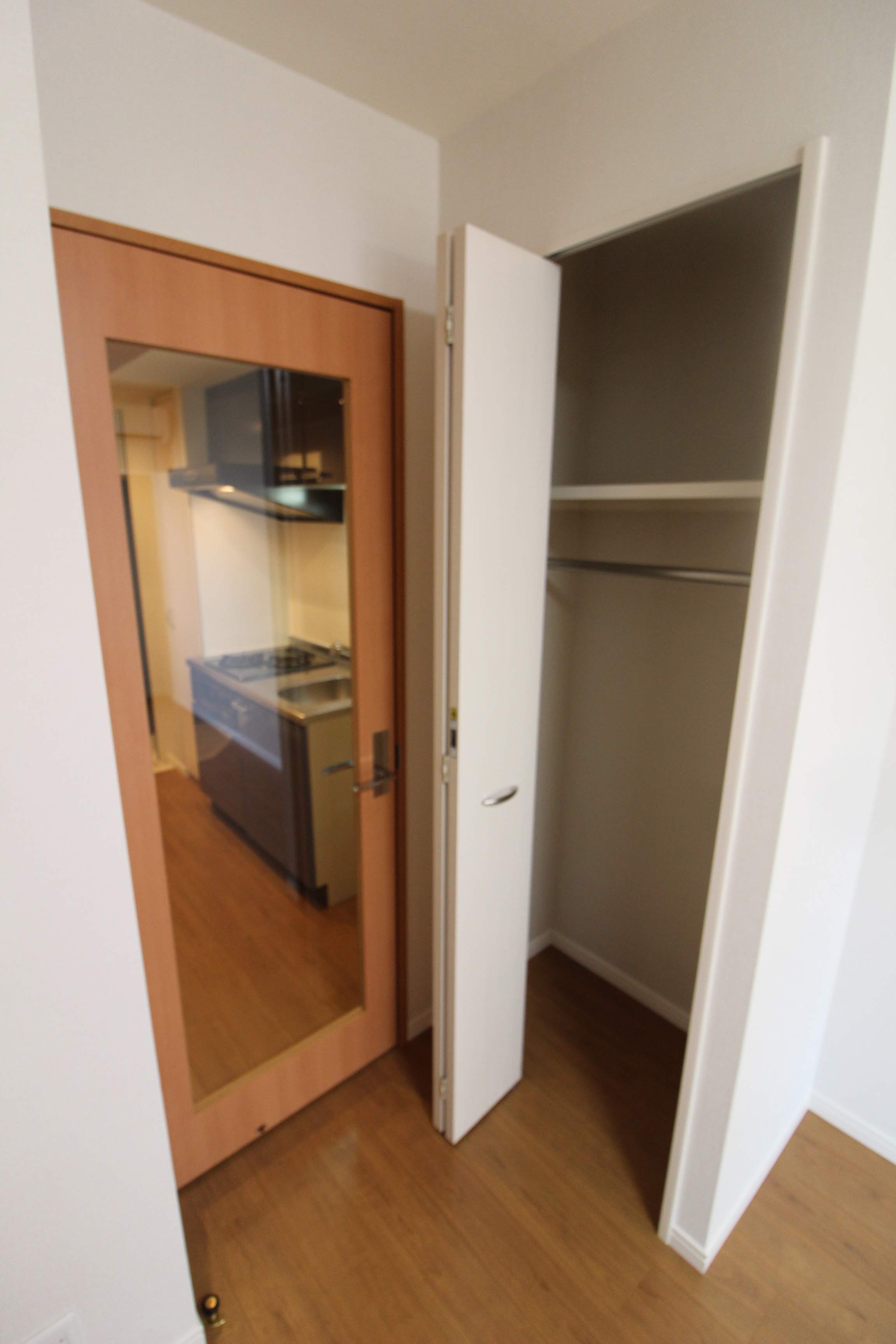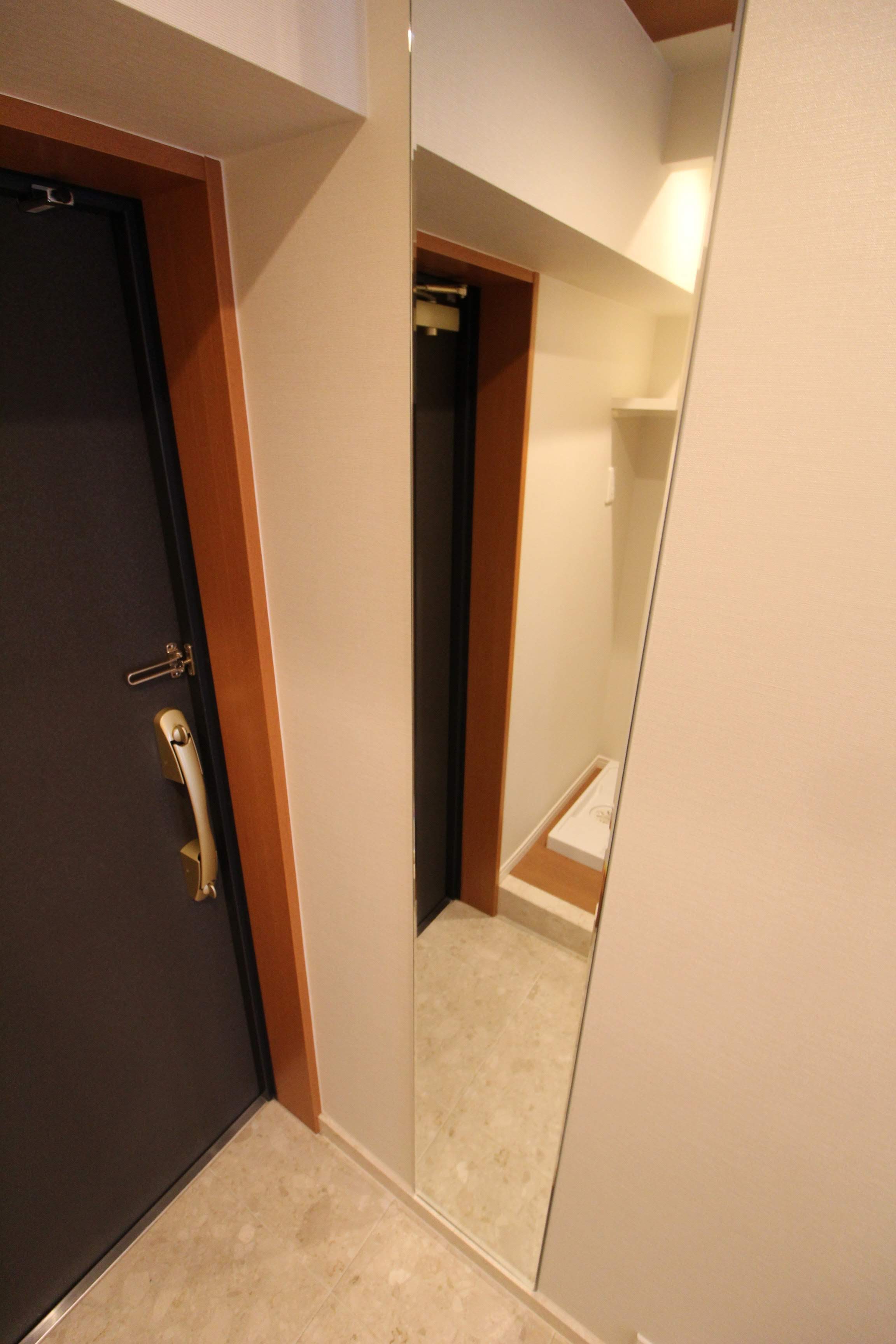 玄関の左には背の高いミラーもあるので、お出かけ前の最終チェックが出来ます。