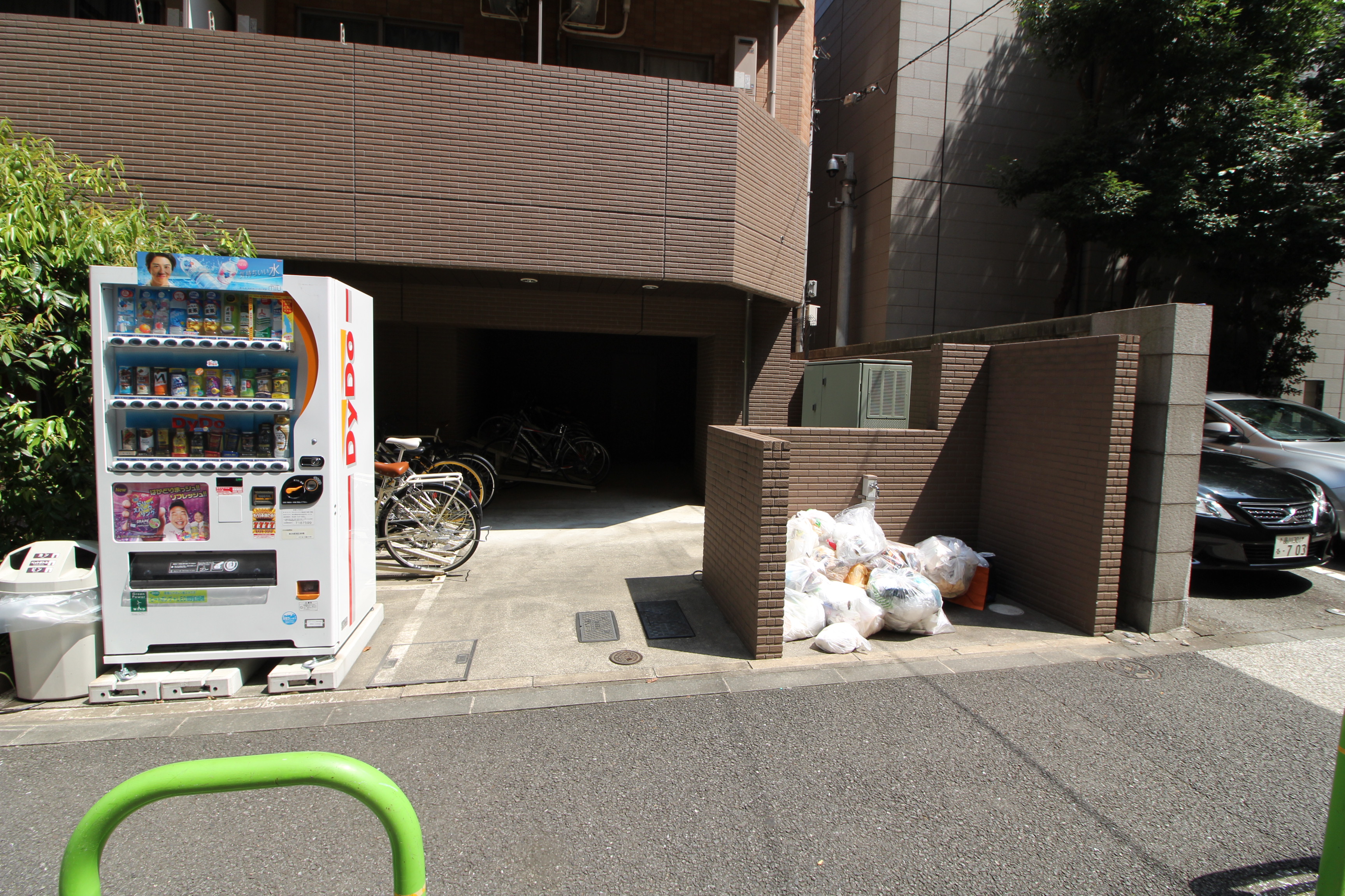 もう1つは、マンション正面から見て右側の奥、自動販売機の横に入り口があります。