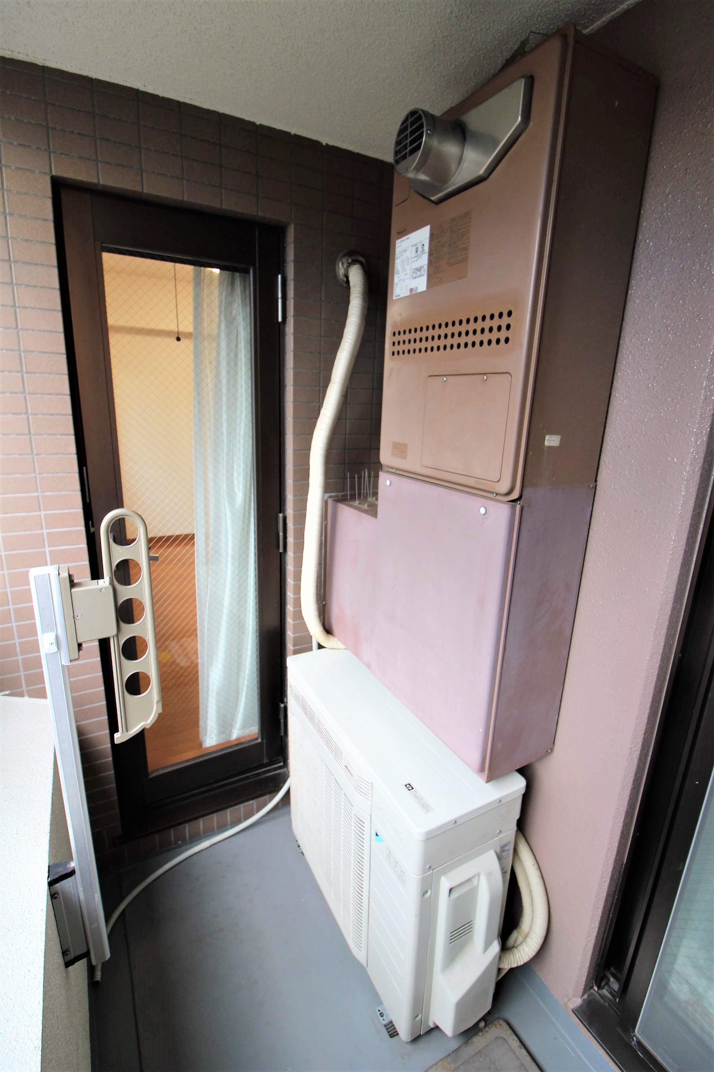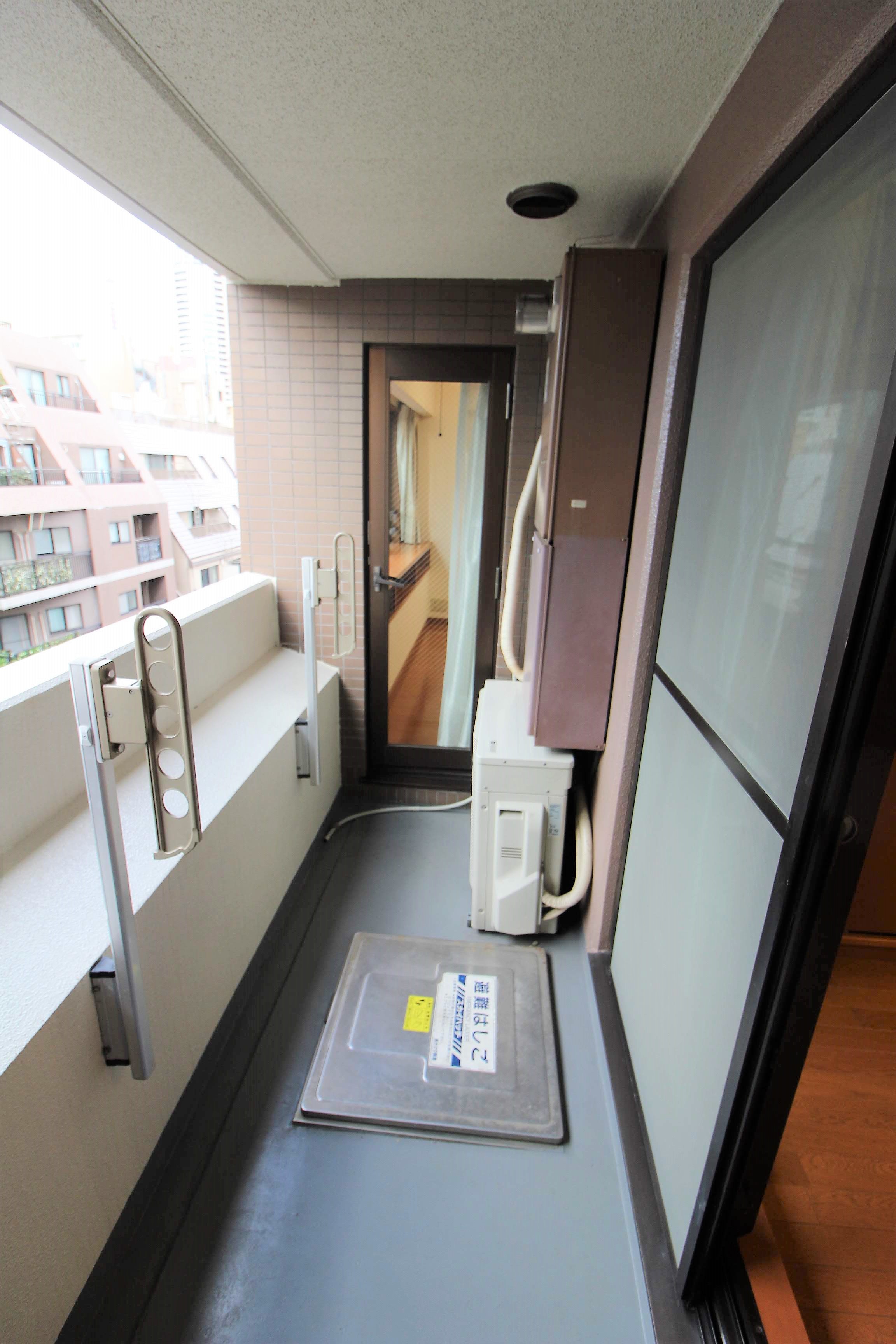 室外機や他の設備の置き場にもなっているため、少し狭いですね。