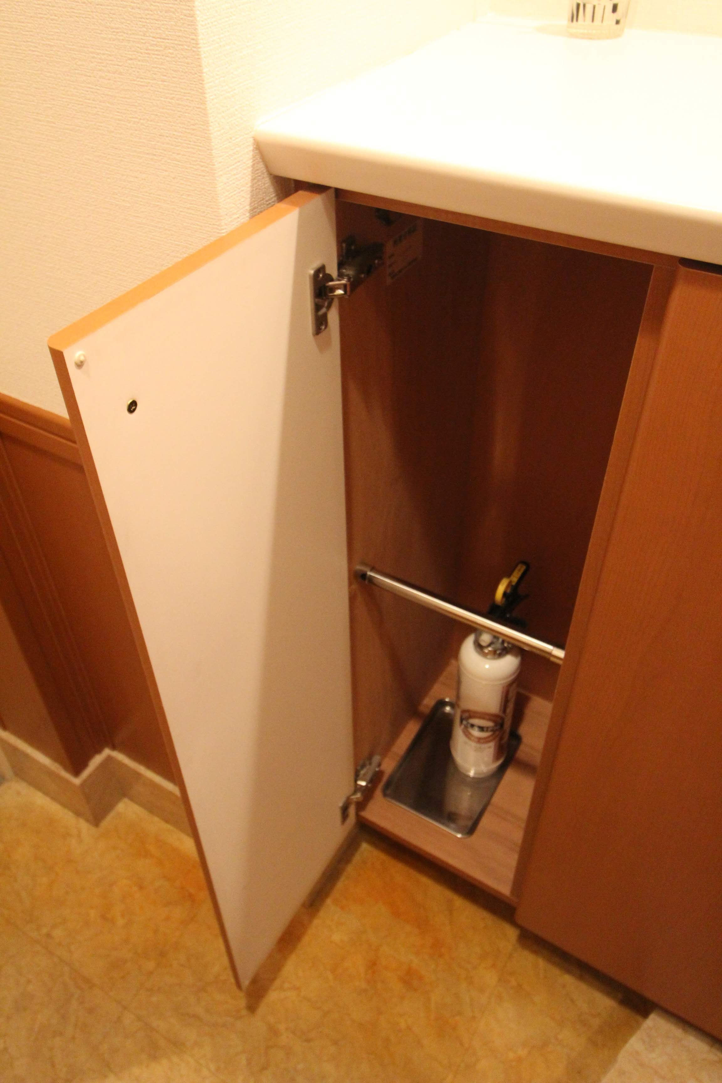 シューズボックスの左脇のトビラには消化器が入っています。