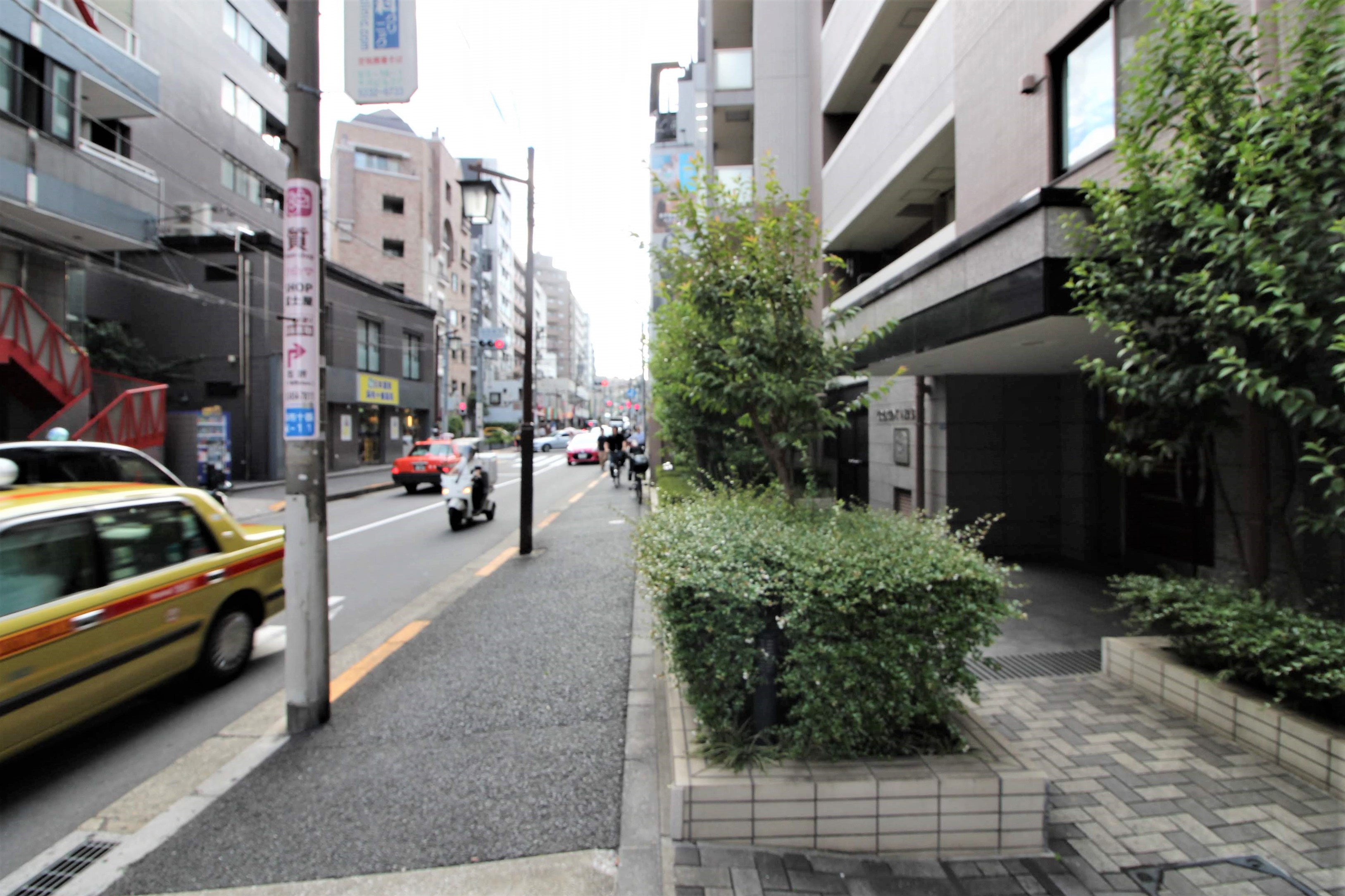 マンションの目の前が都道415号線、麻布通りに出る道があります。