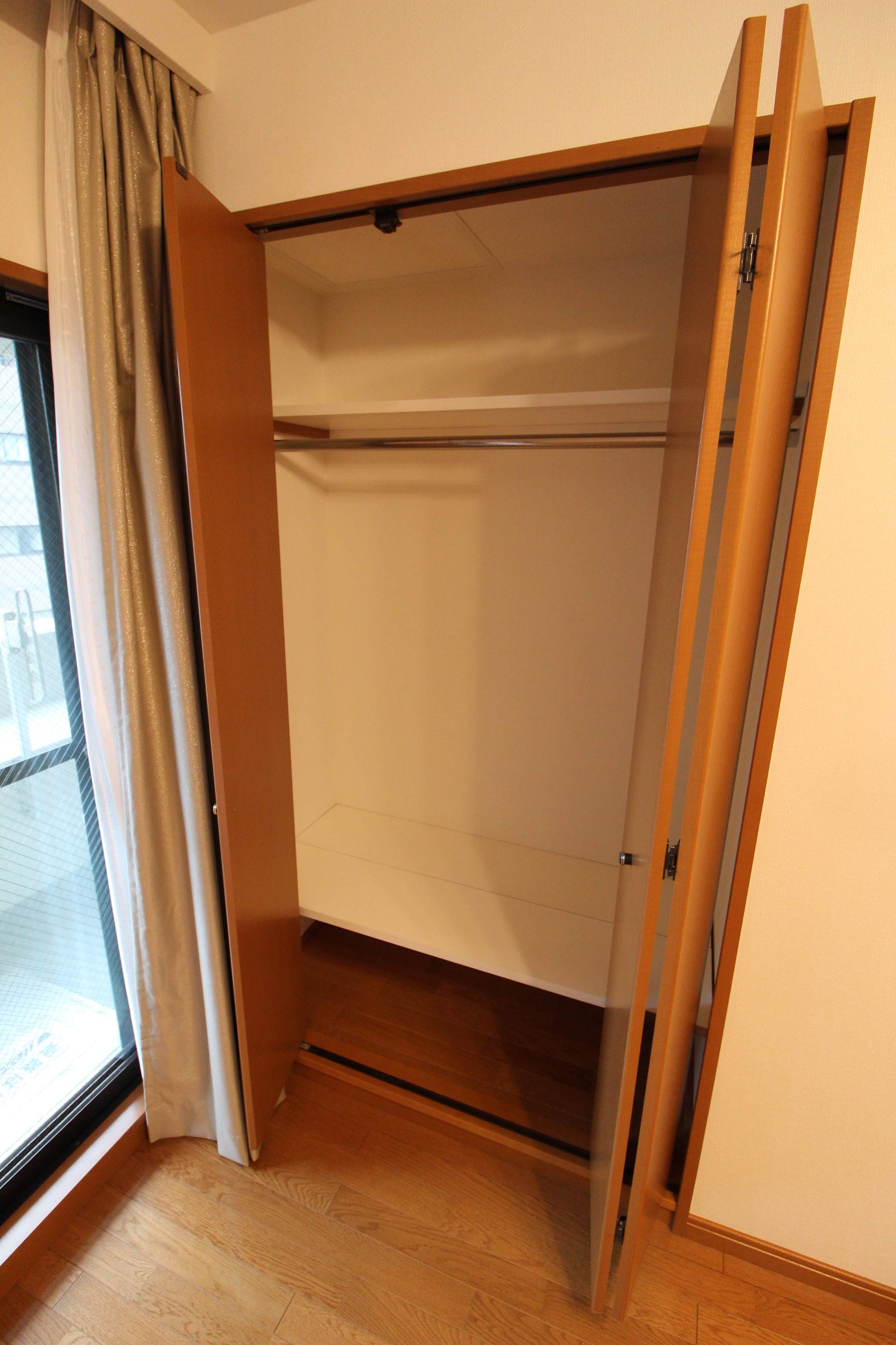 備え付けのクローゼットは、1人分の洋服や荷物が置けるくらいの収納スペースです。