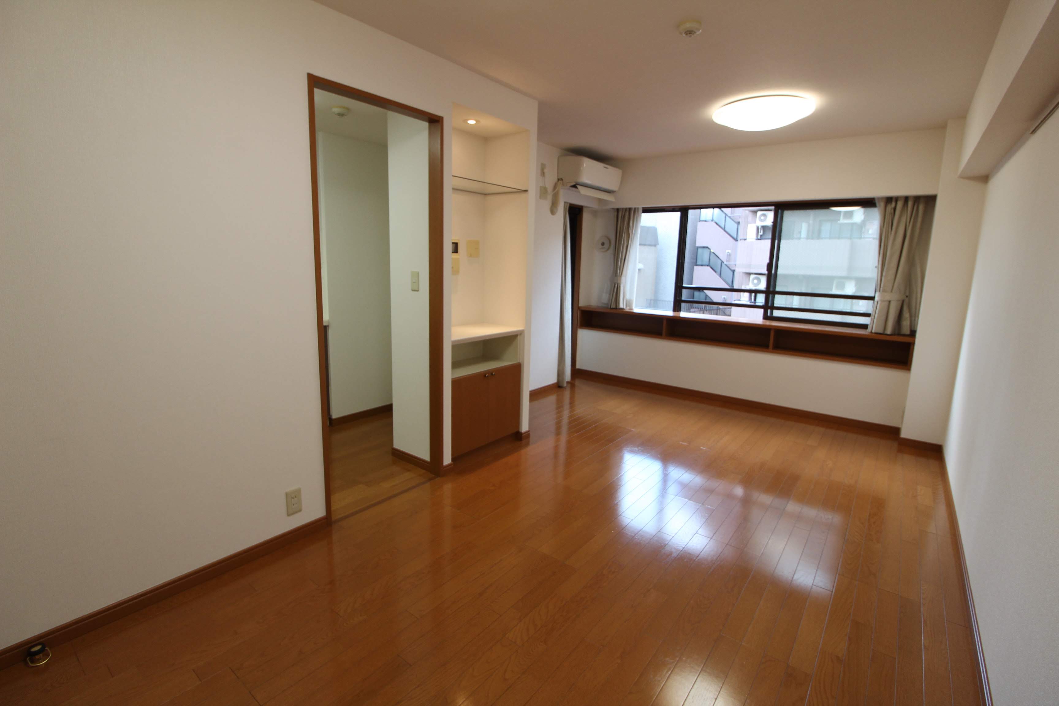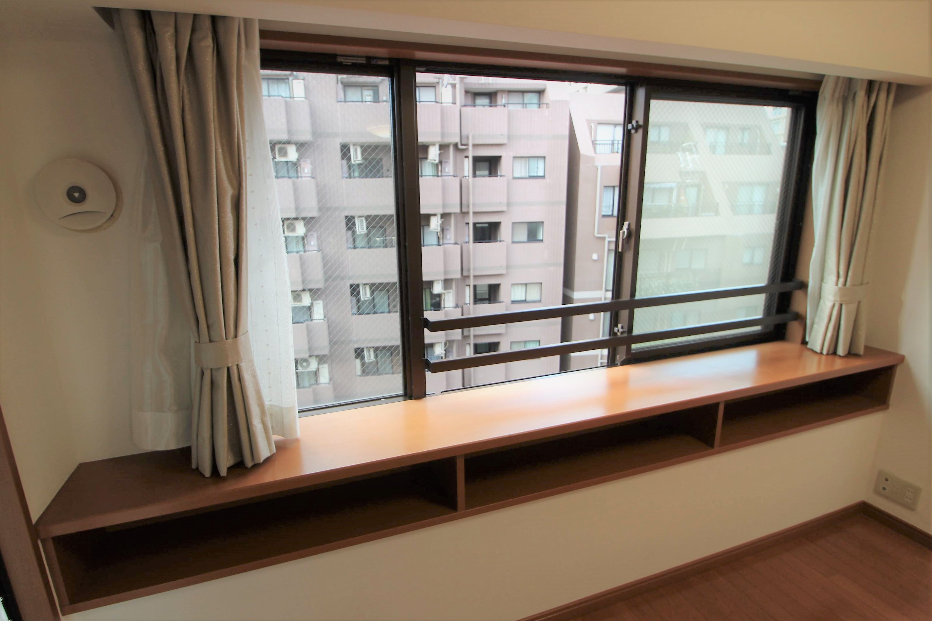 窓際はカウンター棚が設置されているため、インテリアデザインやちょっとした収納にも役立ちます。