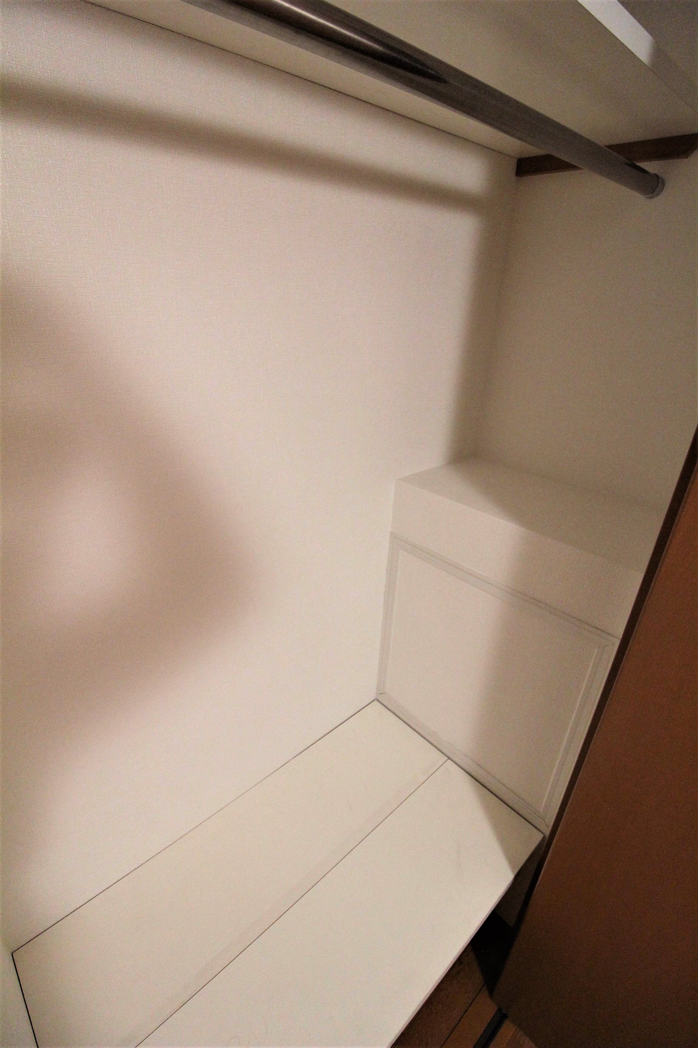 上の棚には衣替えの洋服を収納でき、下には普段必要のない小物類を置くこともできます。
