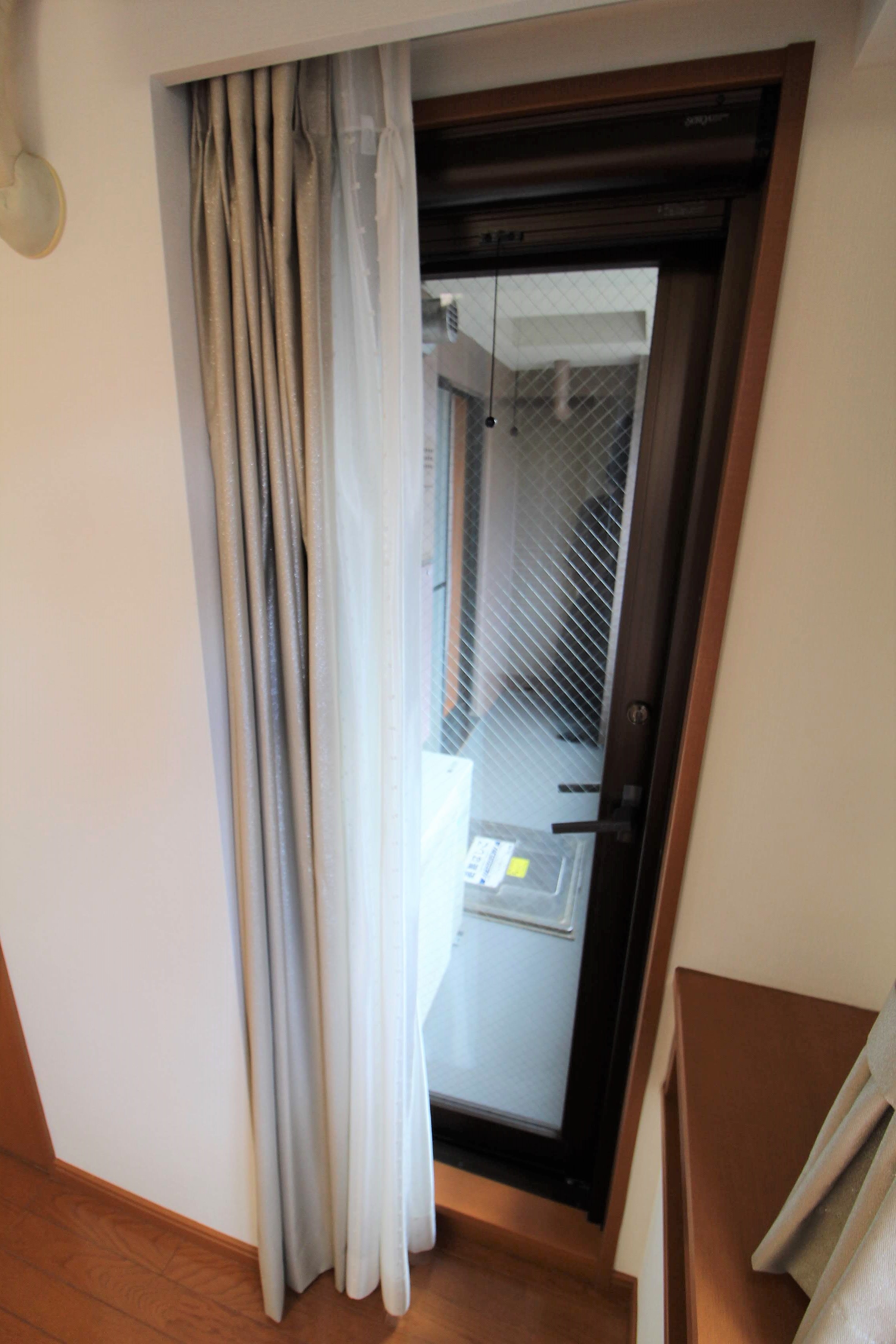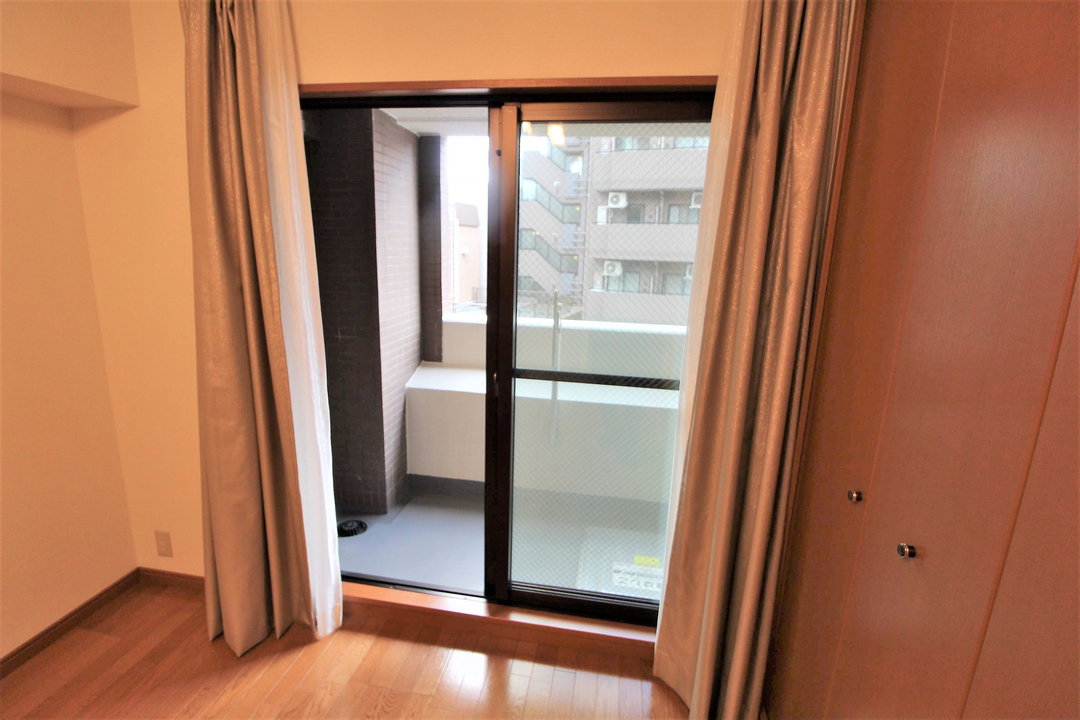バルコニーに続くドアは窓のすぐ横にあります。
