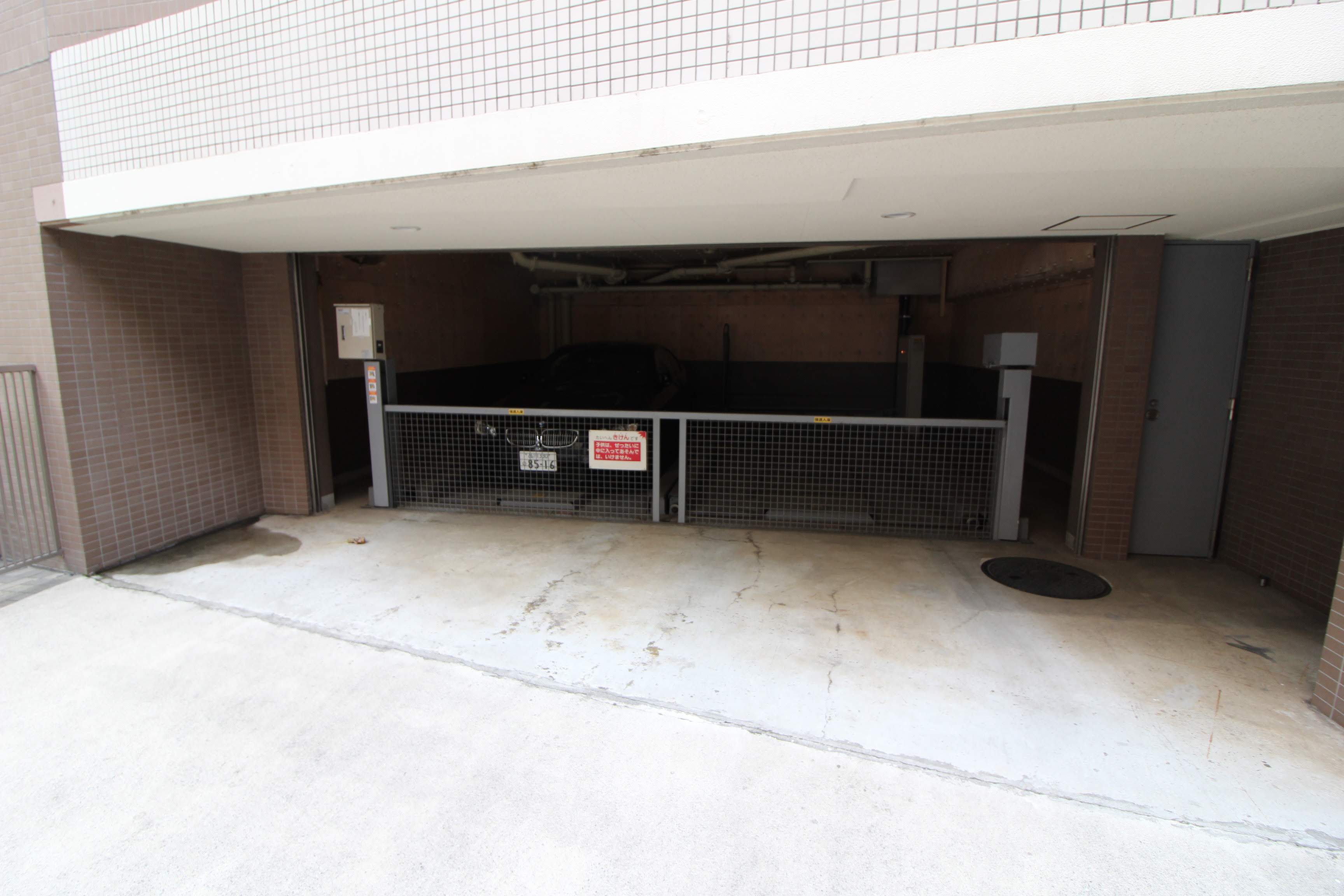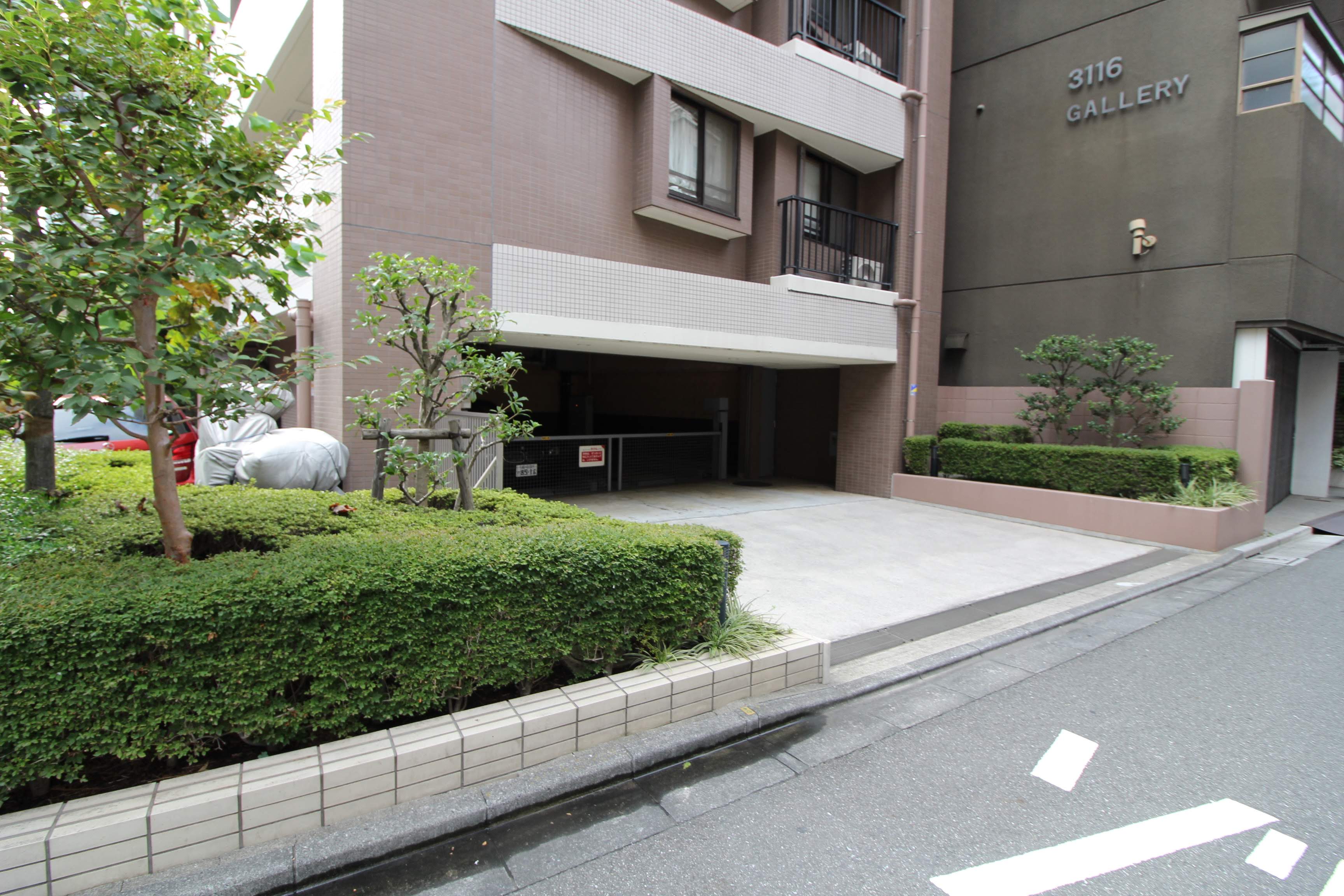 マンションの正面から右手に回ると、駐車場です。