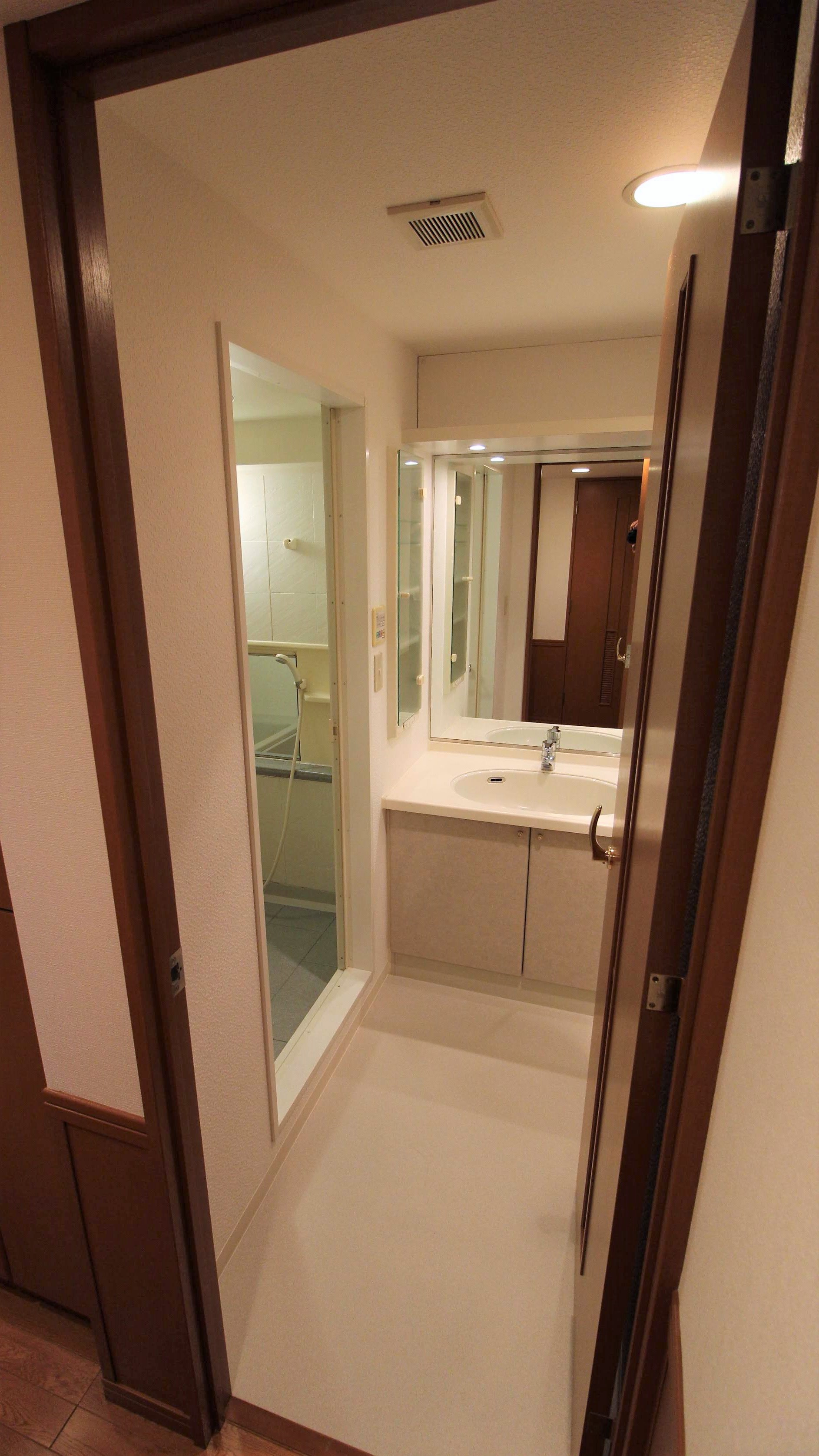 次は洗面所、バスルームのご案内です。