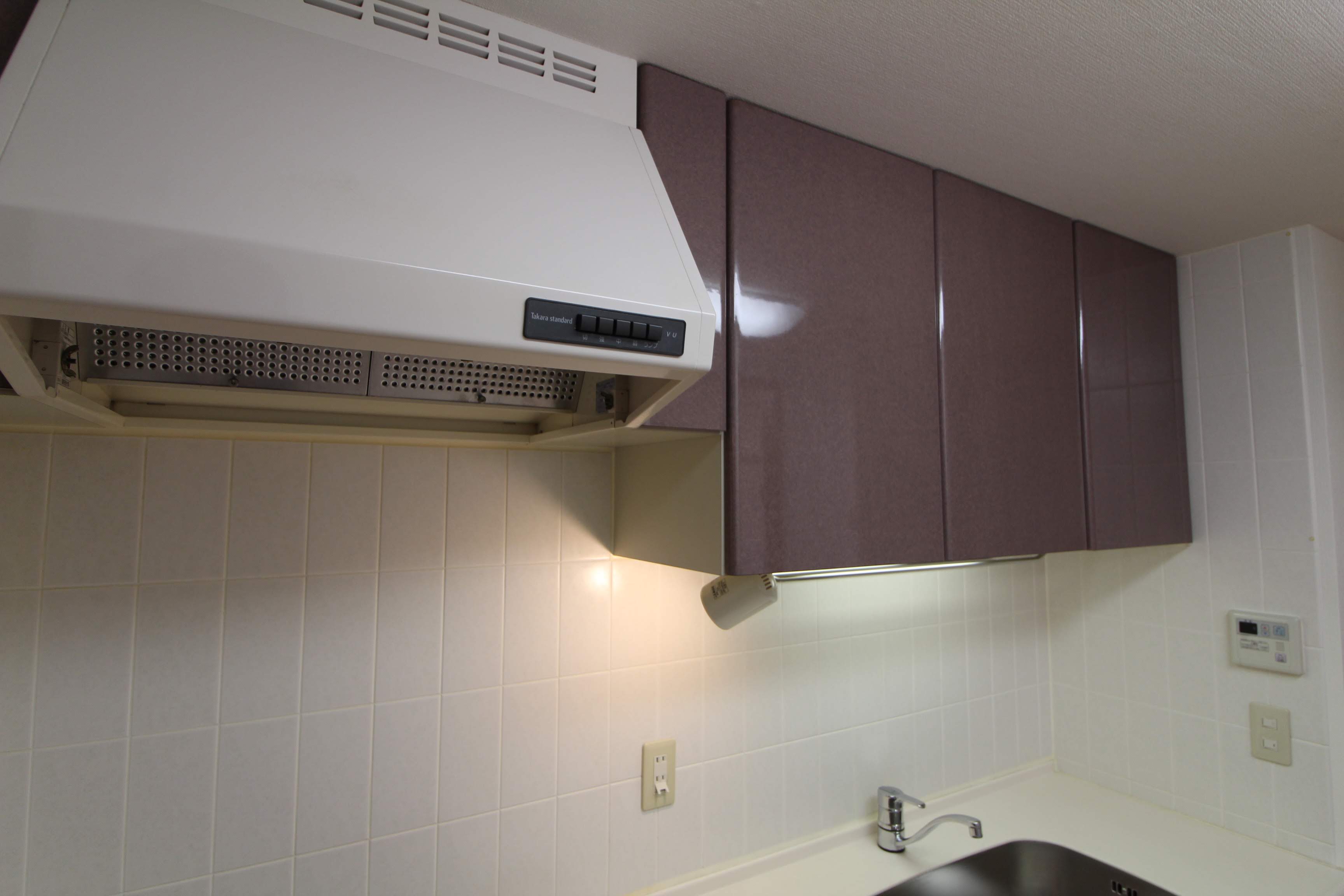 システムキッチン用の換気口と収納棚。