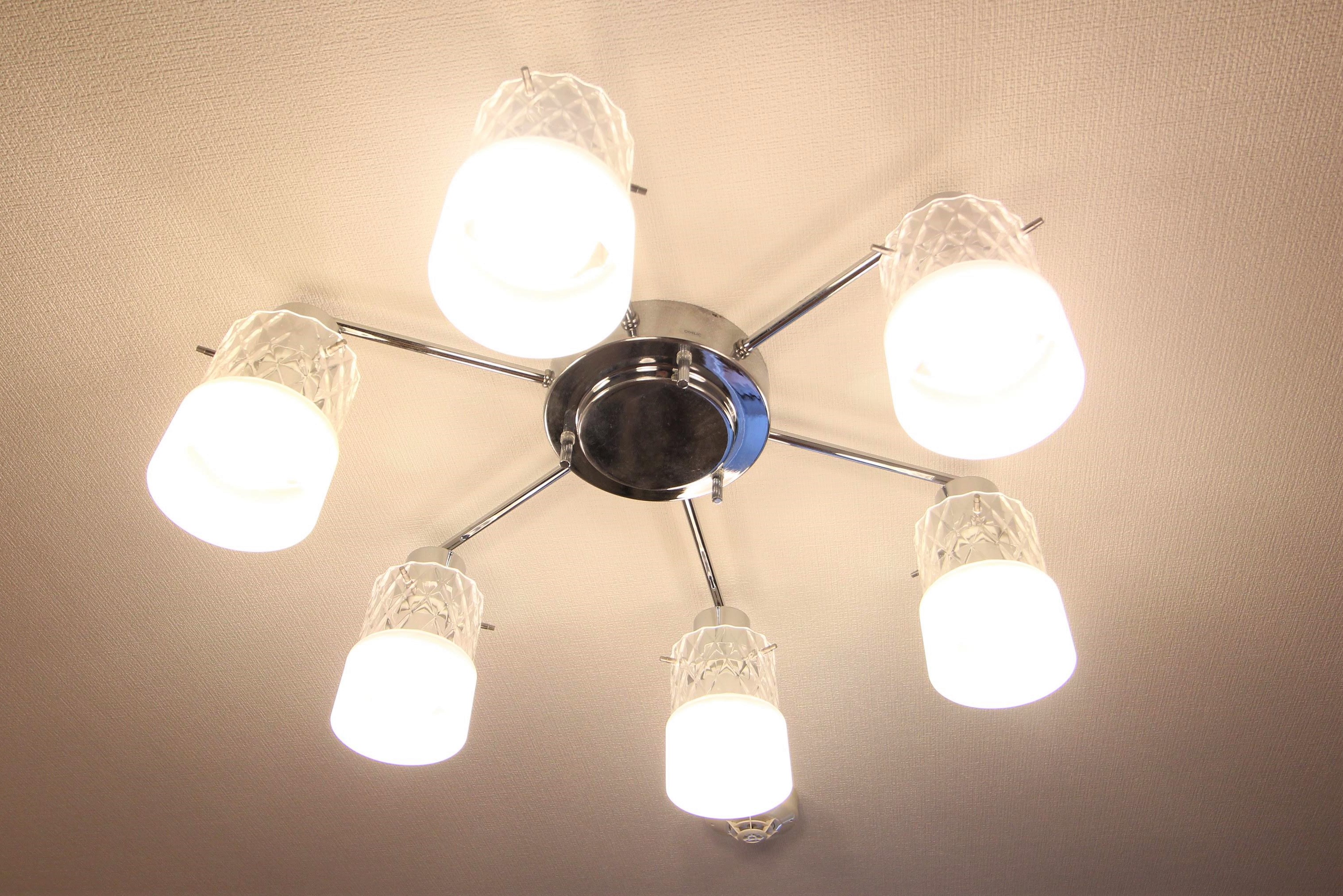 6灯のシャンデリア風の照明が、上品で暖かみのある独特の雰囲気を作り出しています。