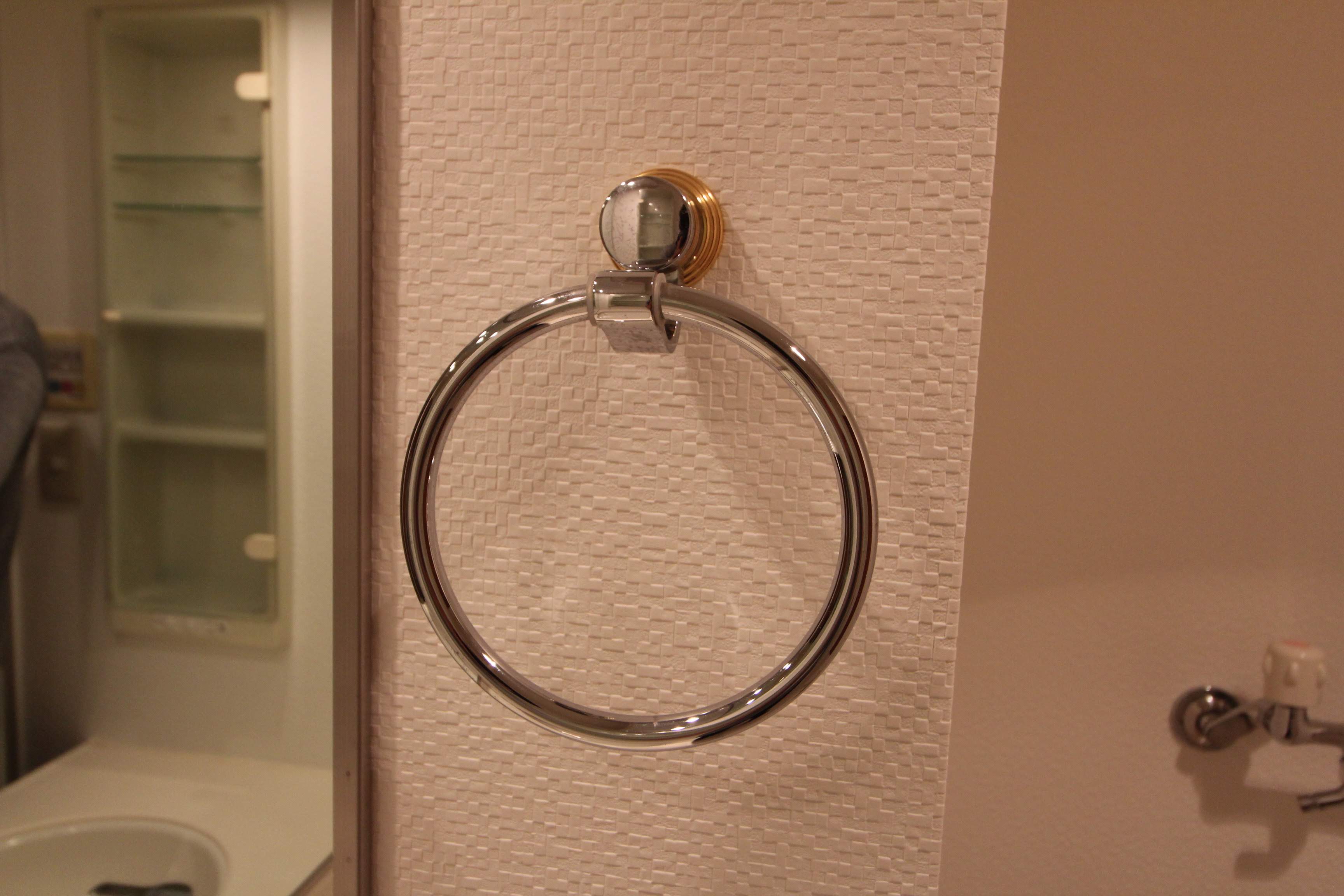 右側には、手拭きタオル掛け用のリングも設置。