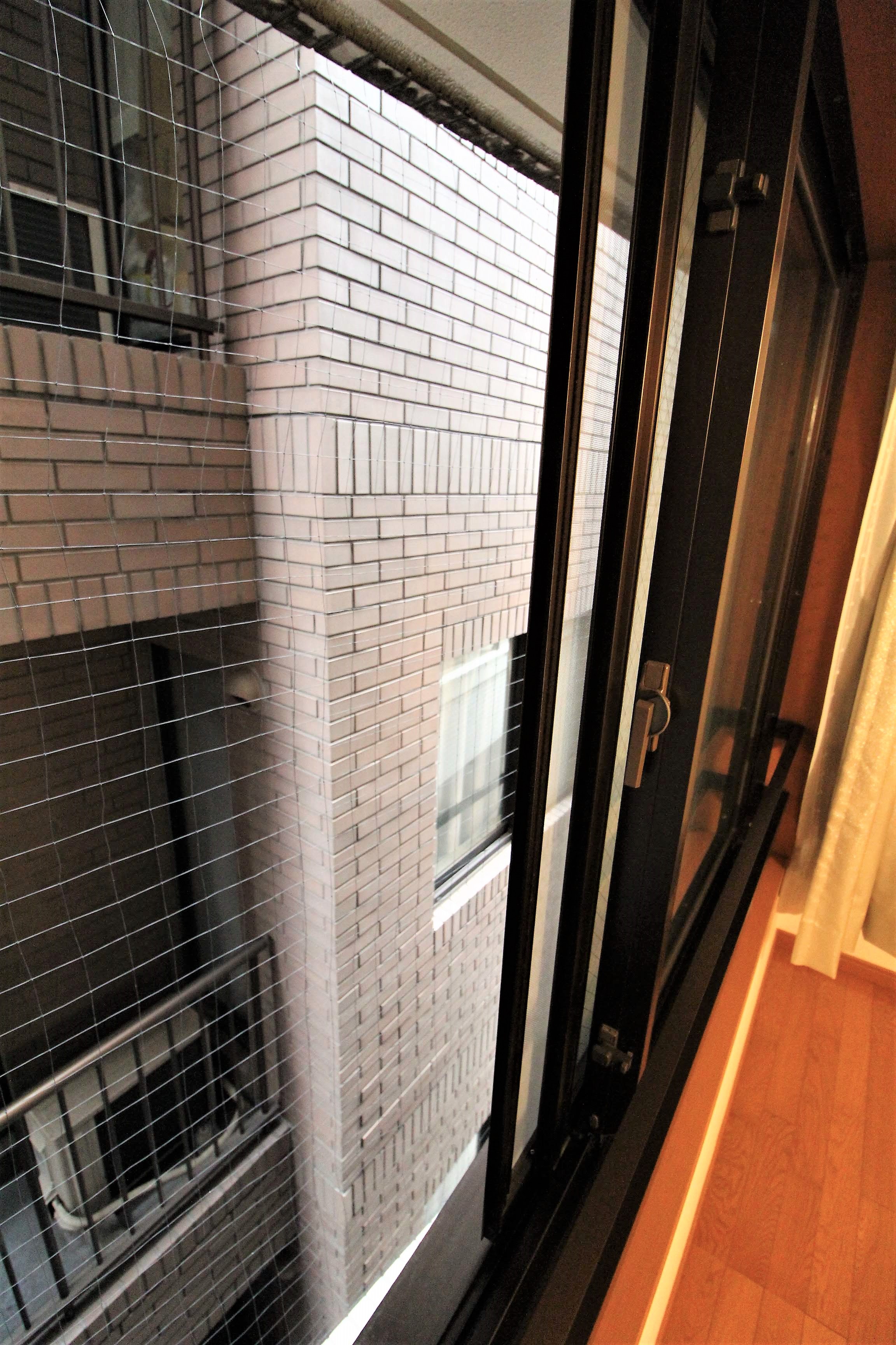 窓には落下防止の柵があります。
