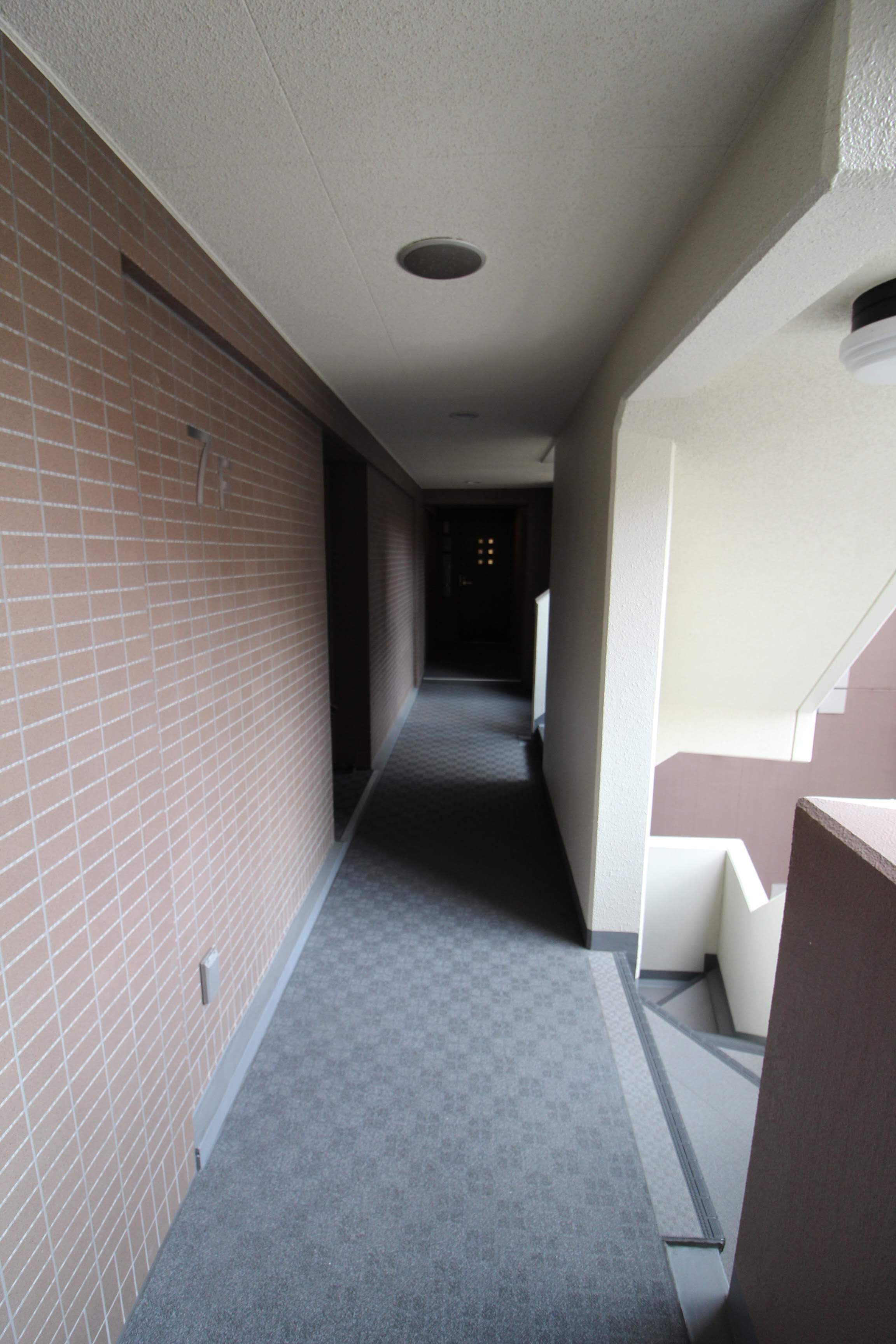 廊下入り口からエレベーター前まではゆったりとした幅があります。