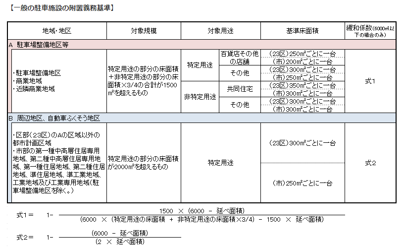 (参考URL:東京都都市整備局「駐車施設の附置義務」より引用)