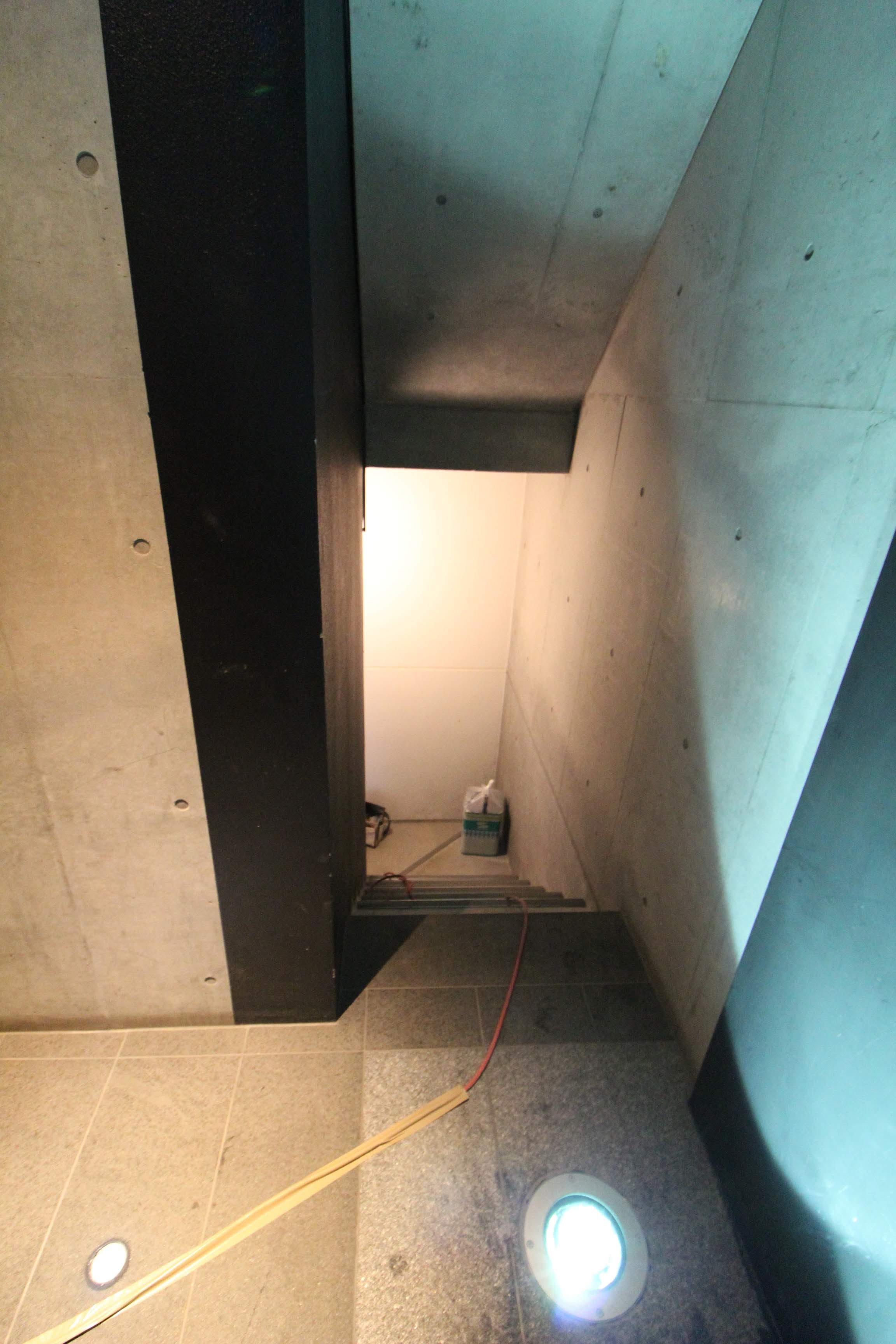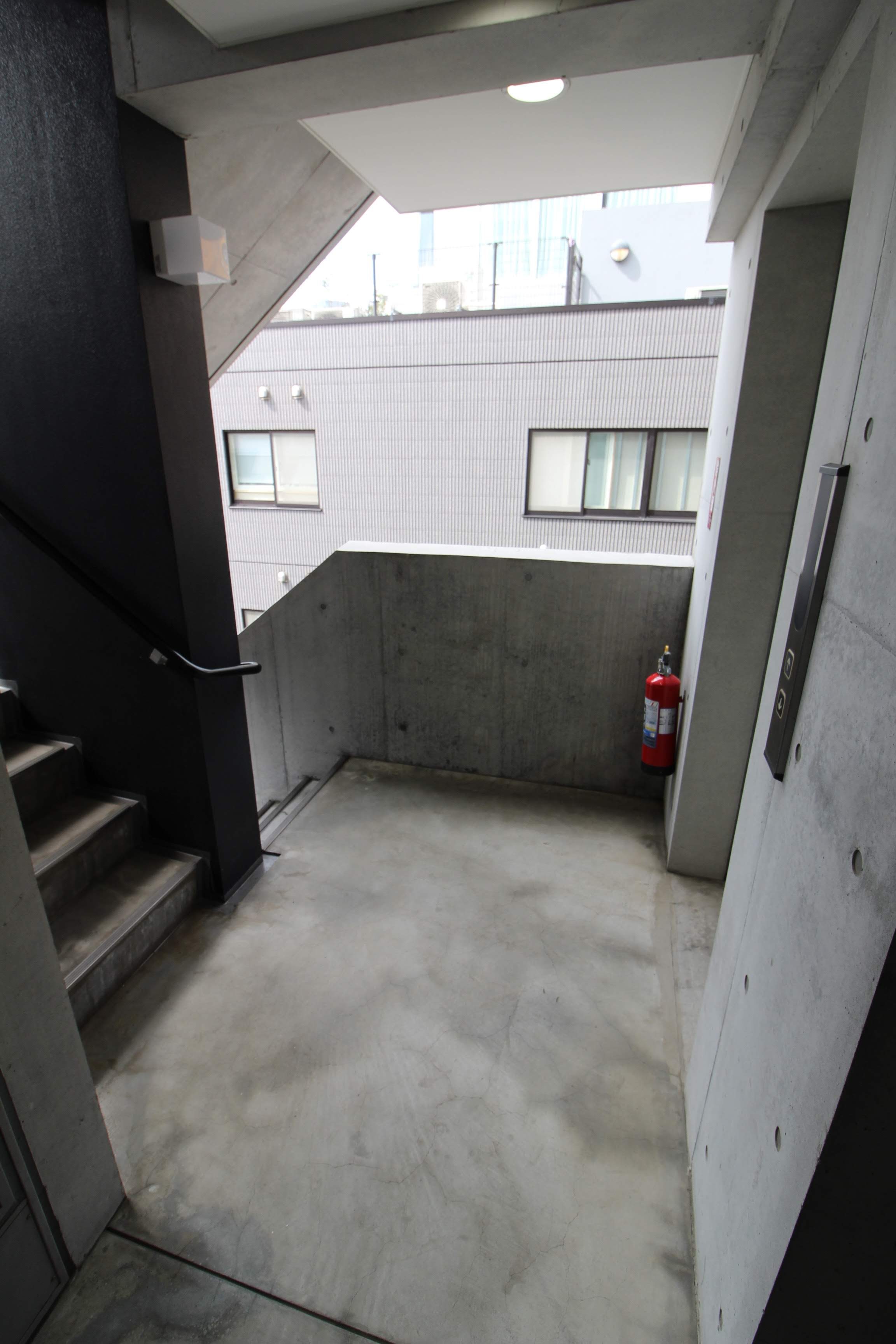 エレベーター前には地下に続く階段があります。