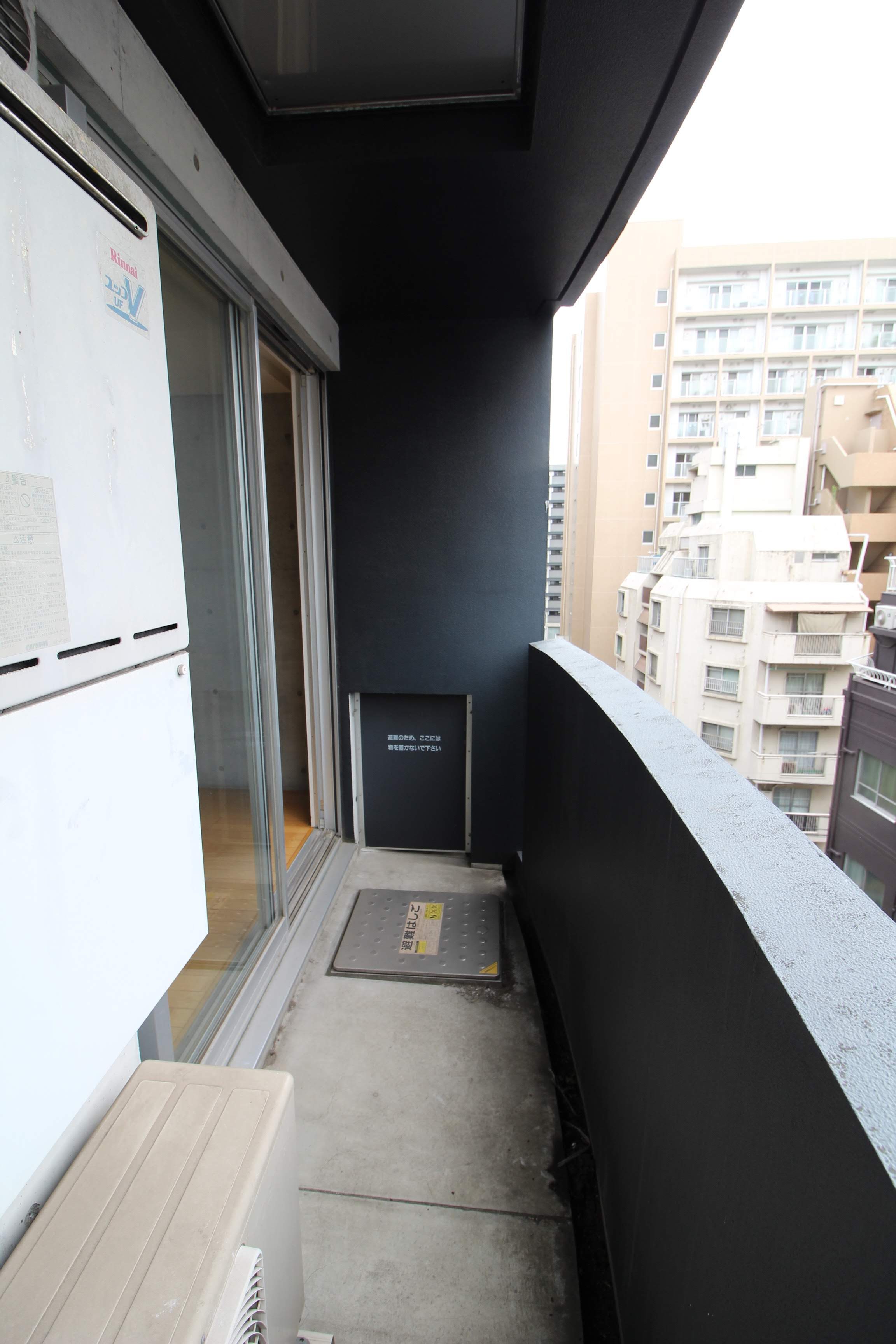 バルコニーの塀や壁はマンションのカラーでもある黒で統一されています。