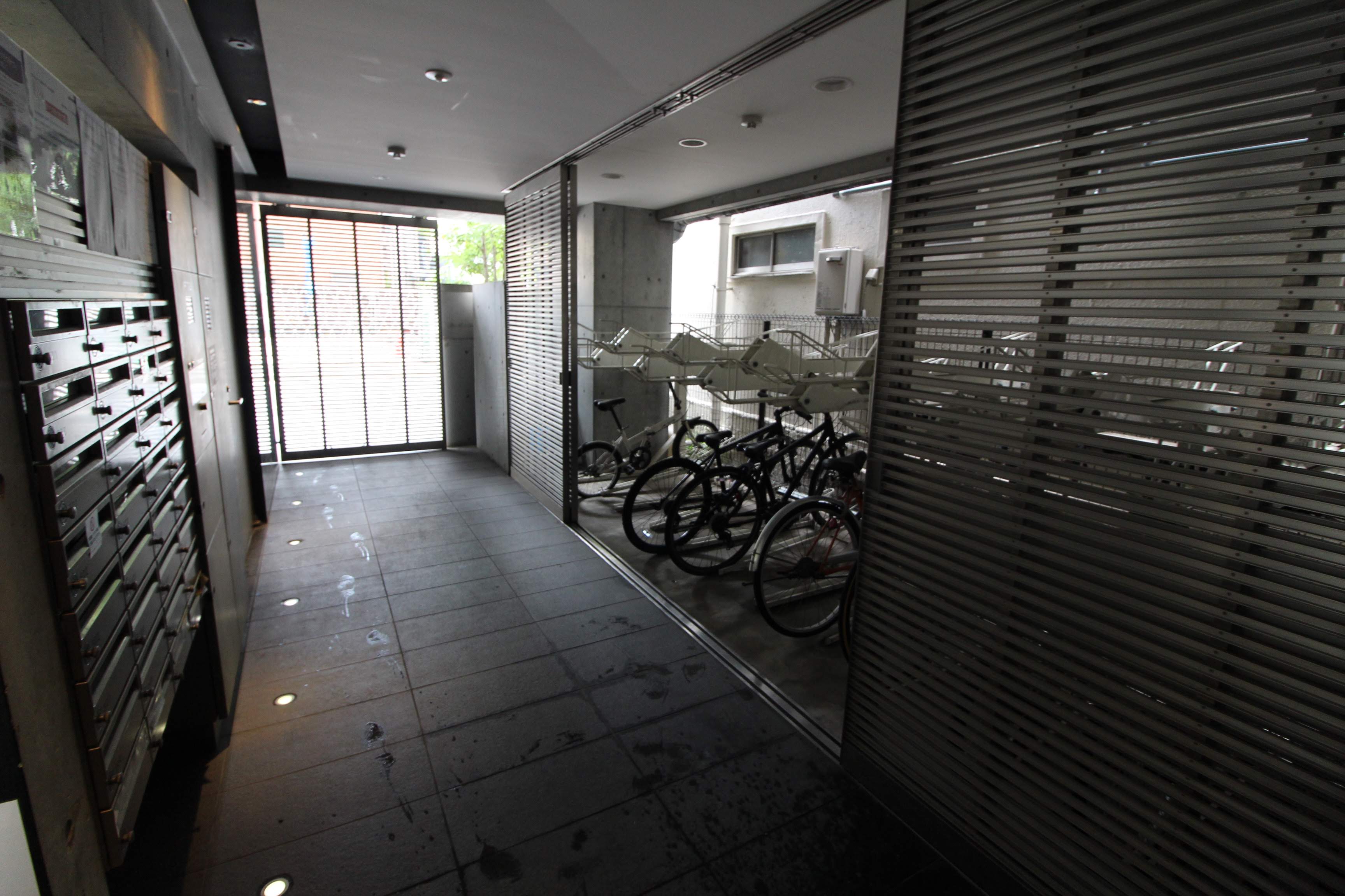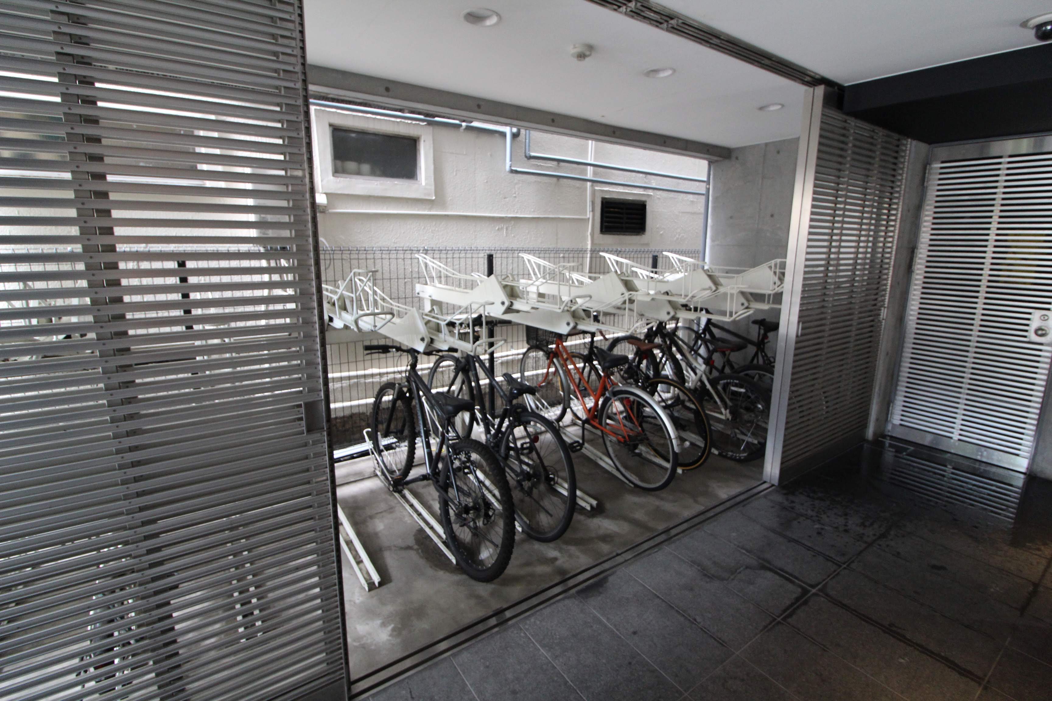 廊下の左側には駐輪場があります。