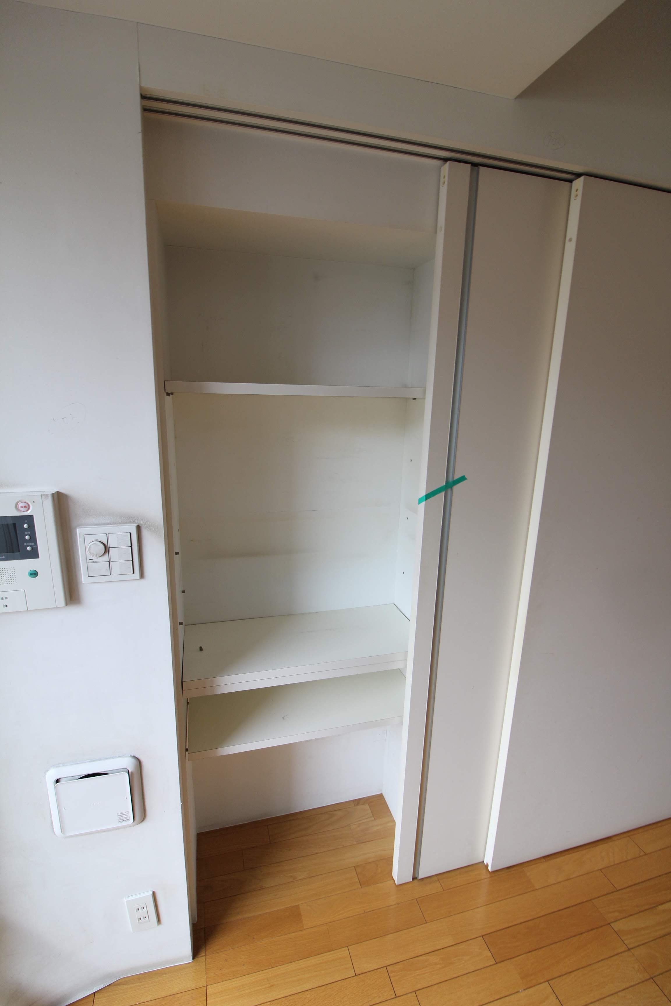 左側が収納棚、右側はクローゼットです。
