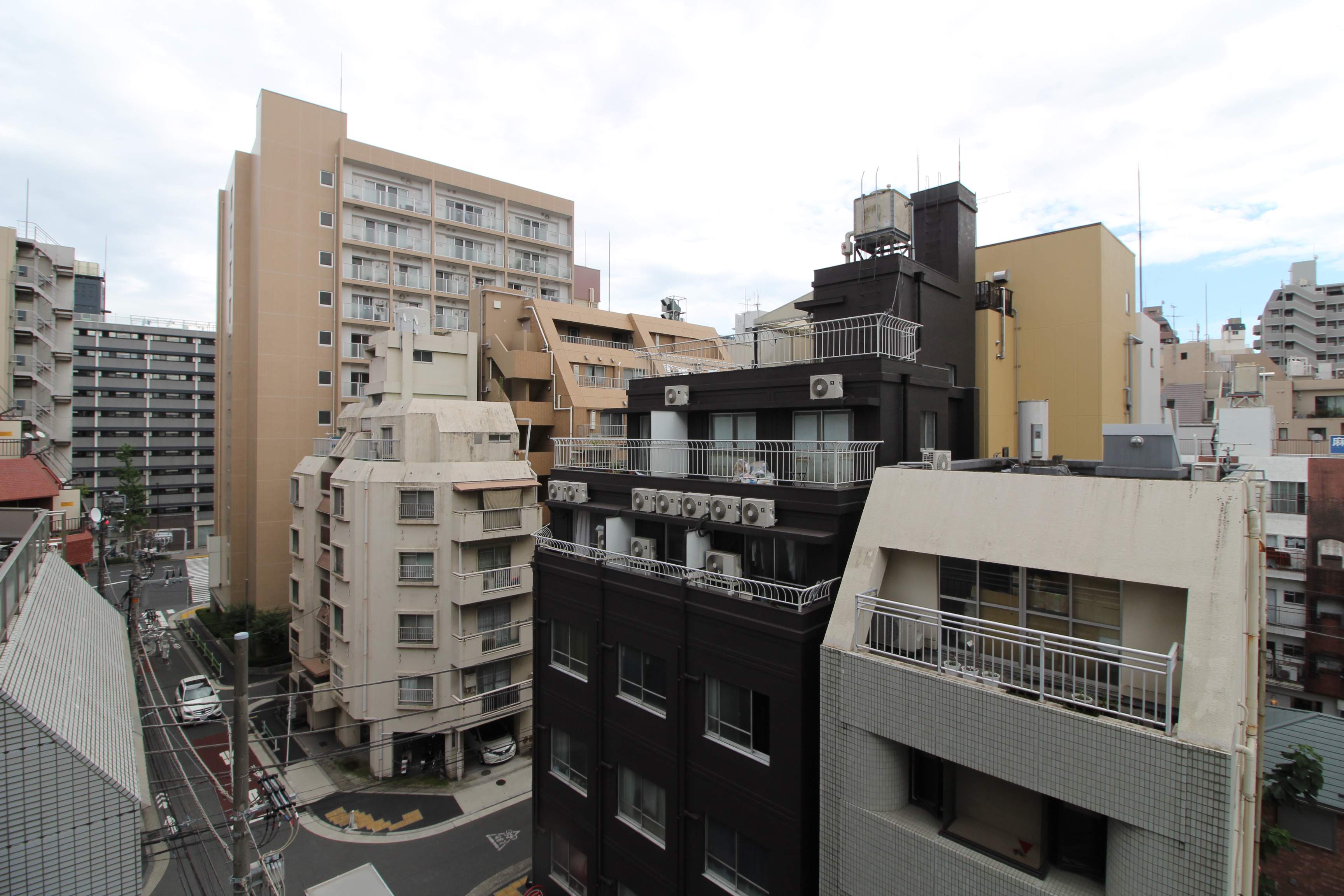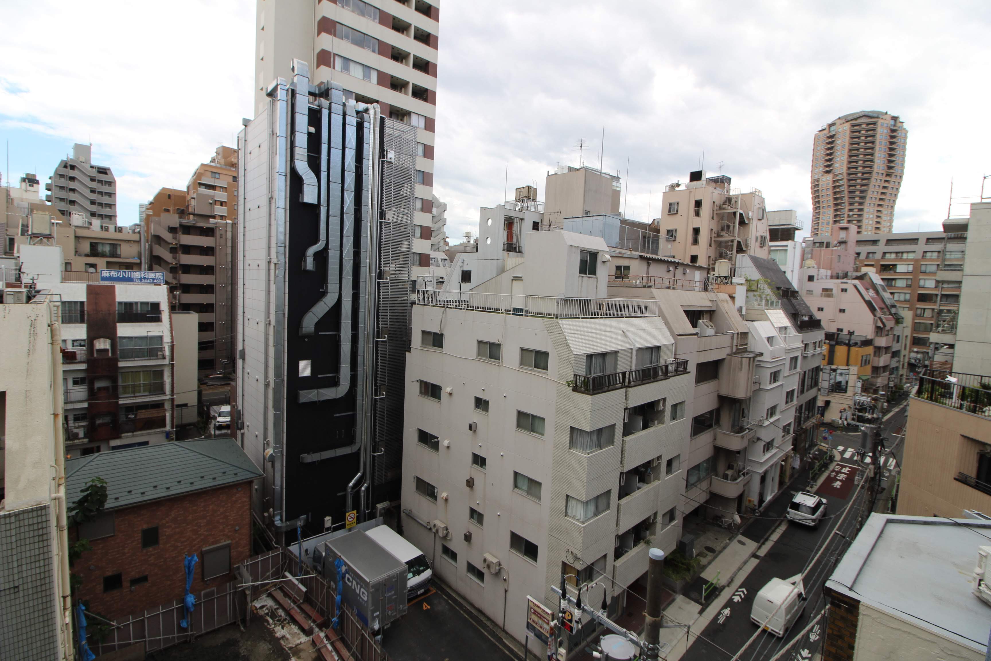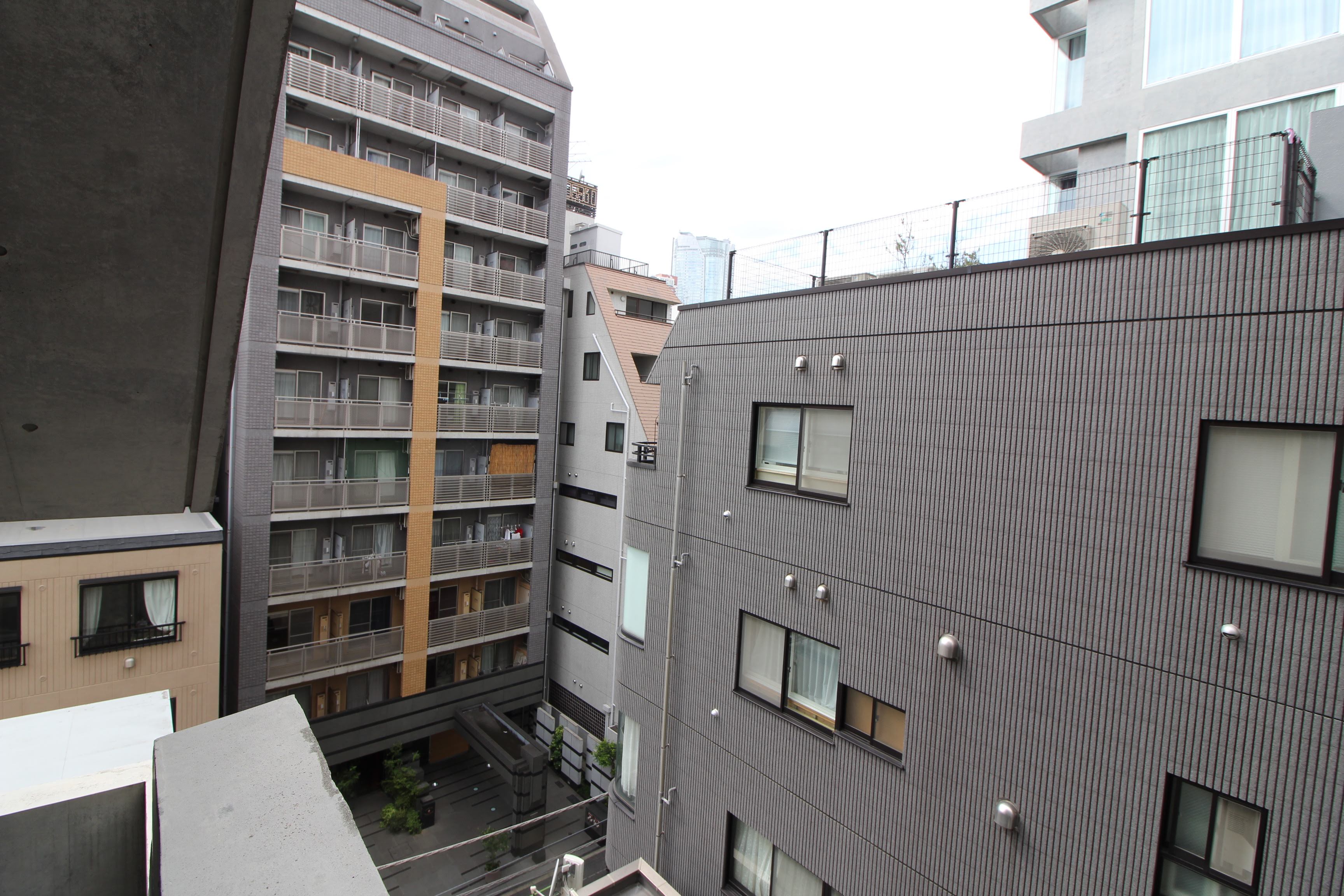 バルコニーの景色は麻布十番の町並みを感じさせる、レトロなビル群を一望できます。