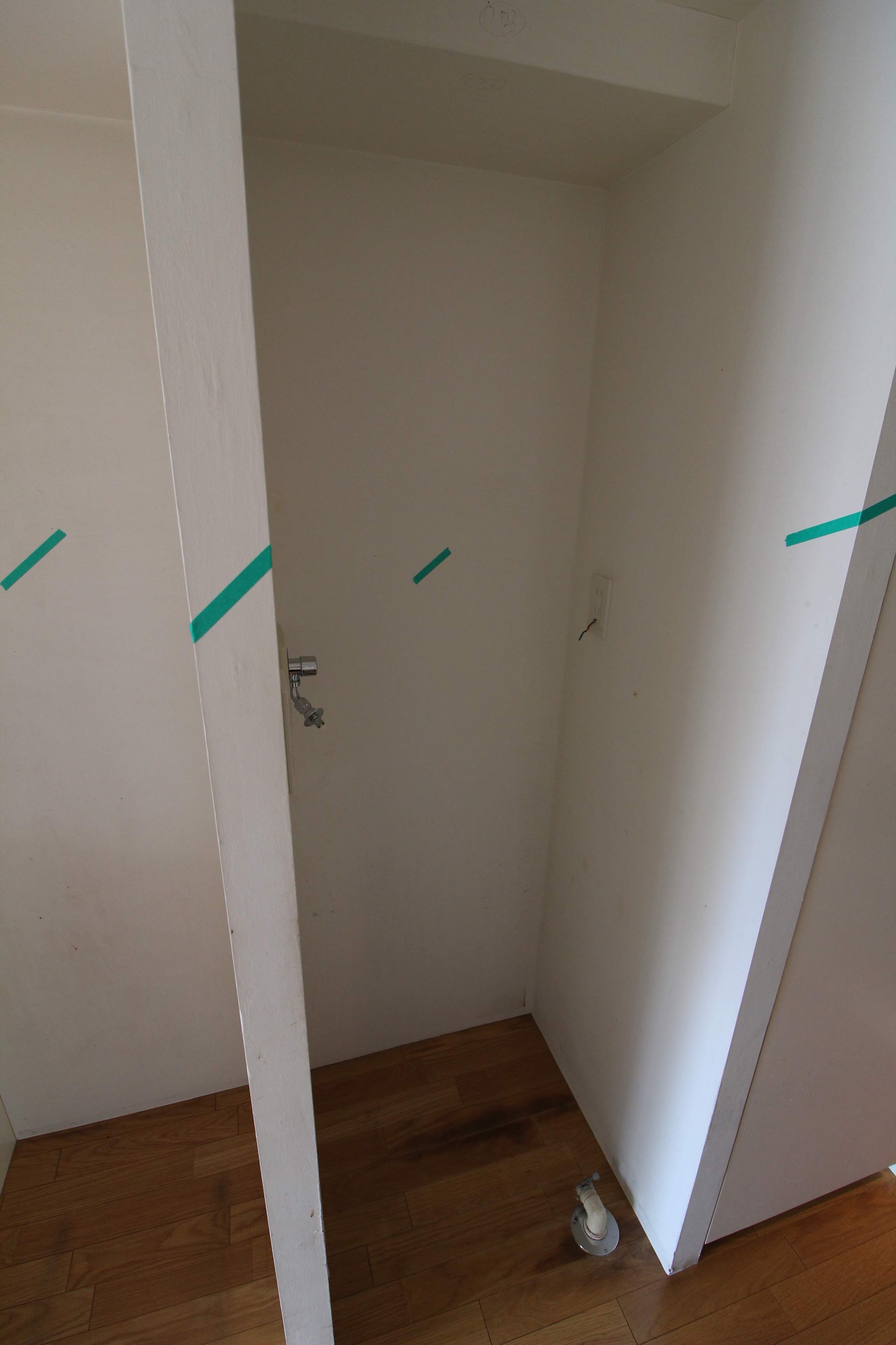 部屋の前の廊下部分には洗濯機置場。