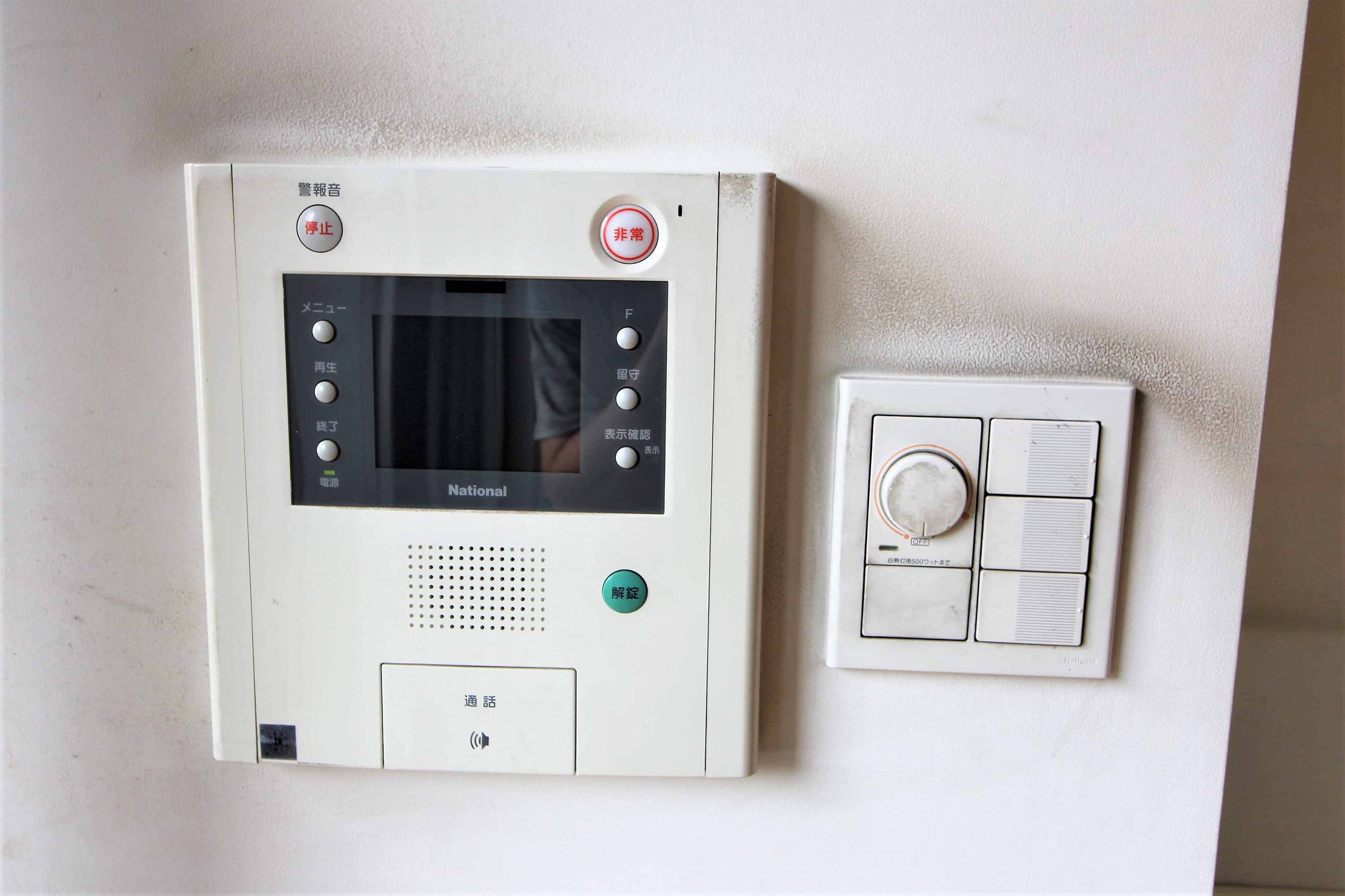 また、こちら側にディスプレイ付きのインターフォンと照明ボタンがあります。