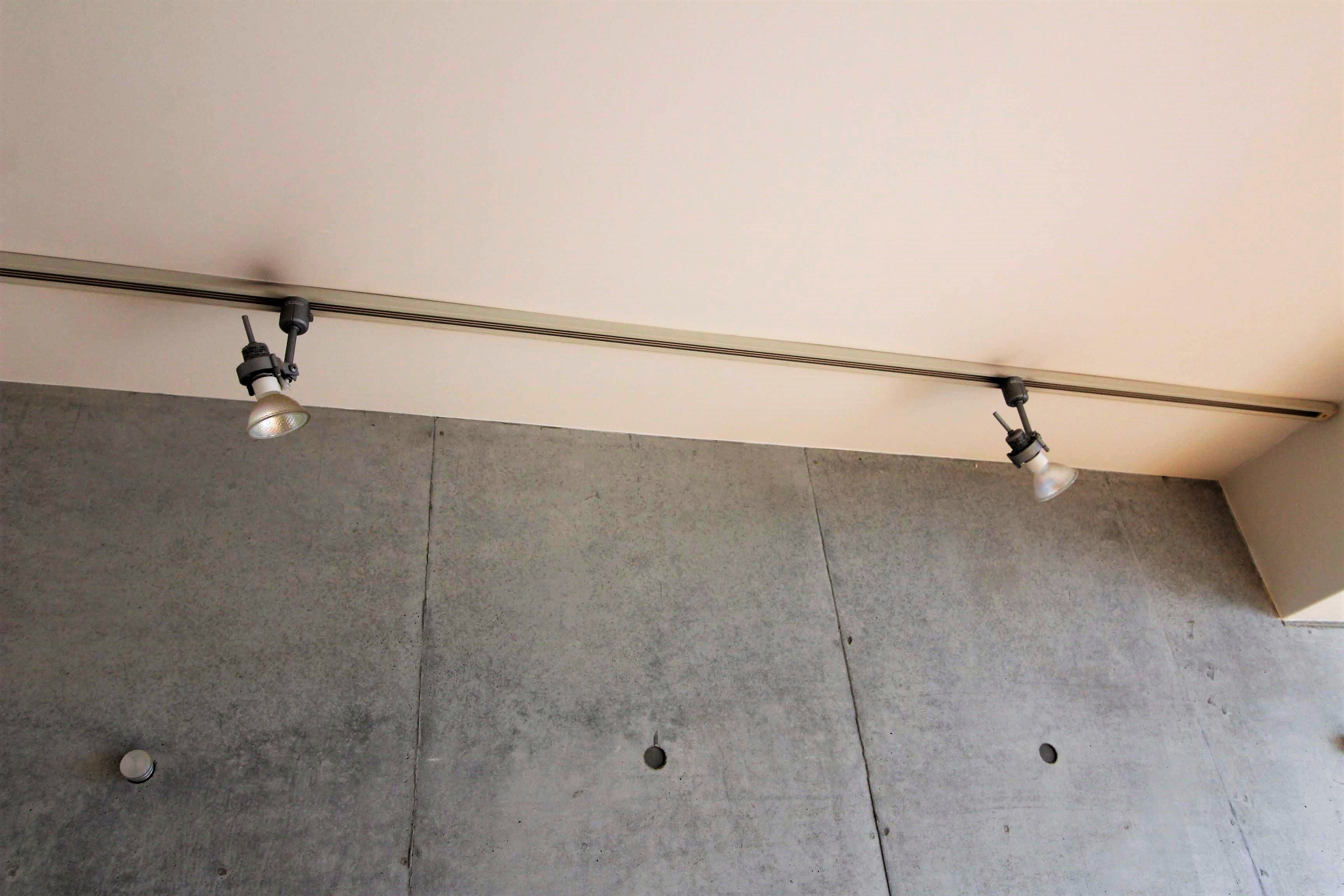 壁際のレールには照明が設置されています。