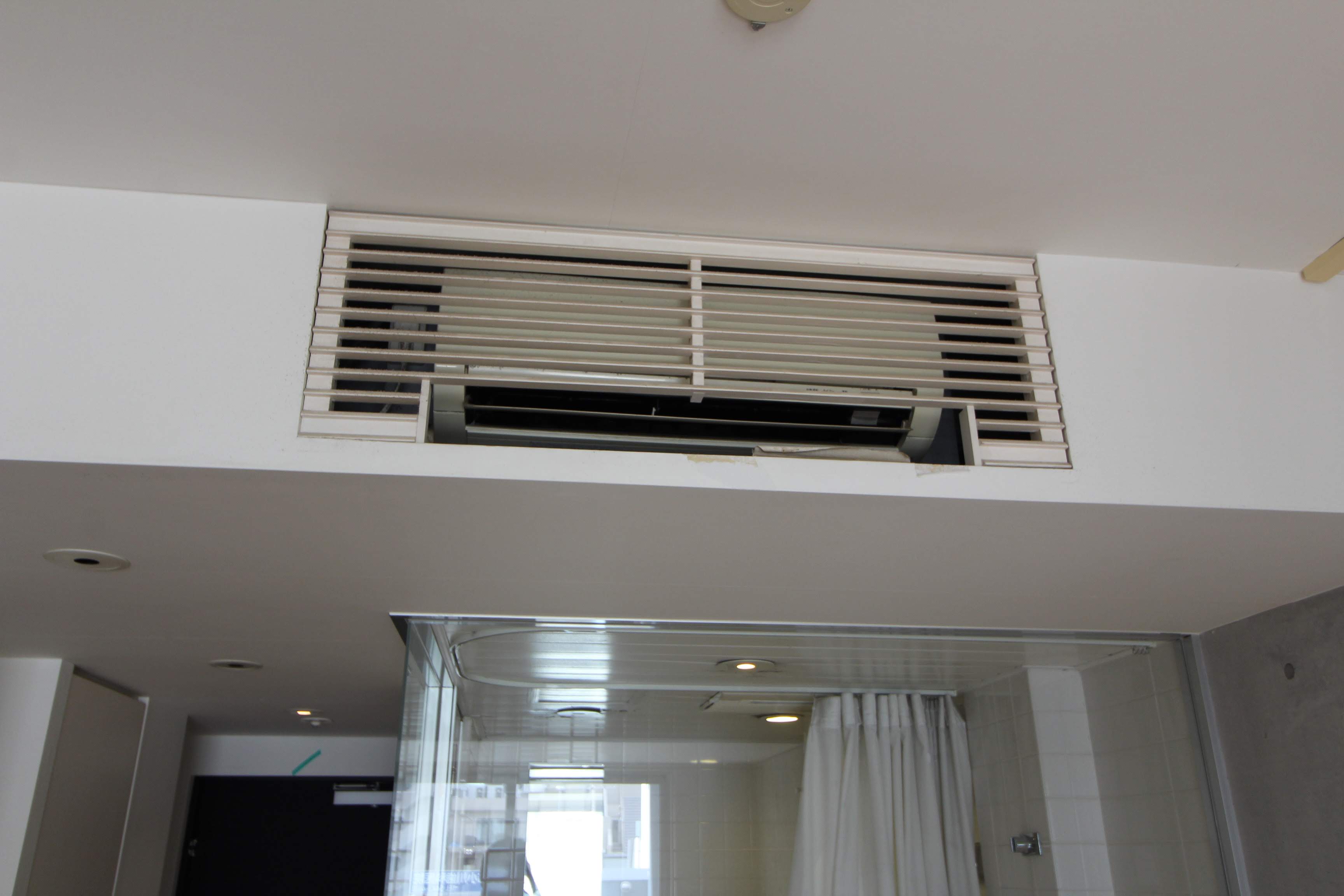 エアコンはバスルームの上に取り付けてあります。