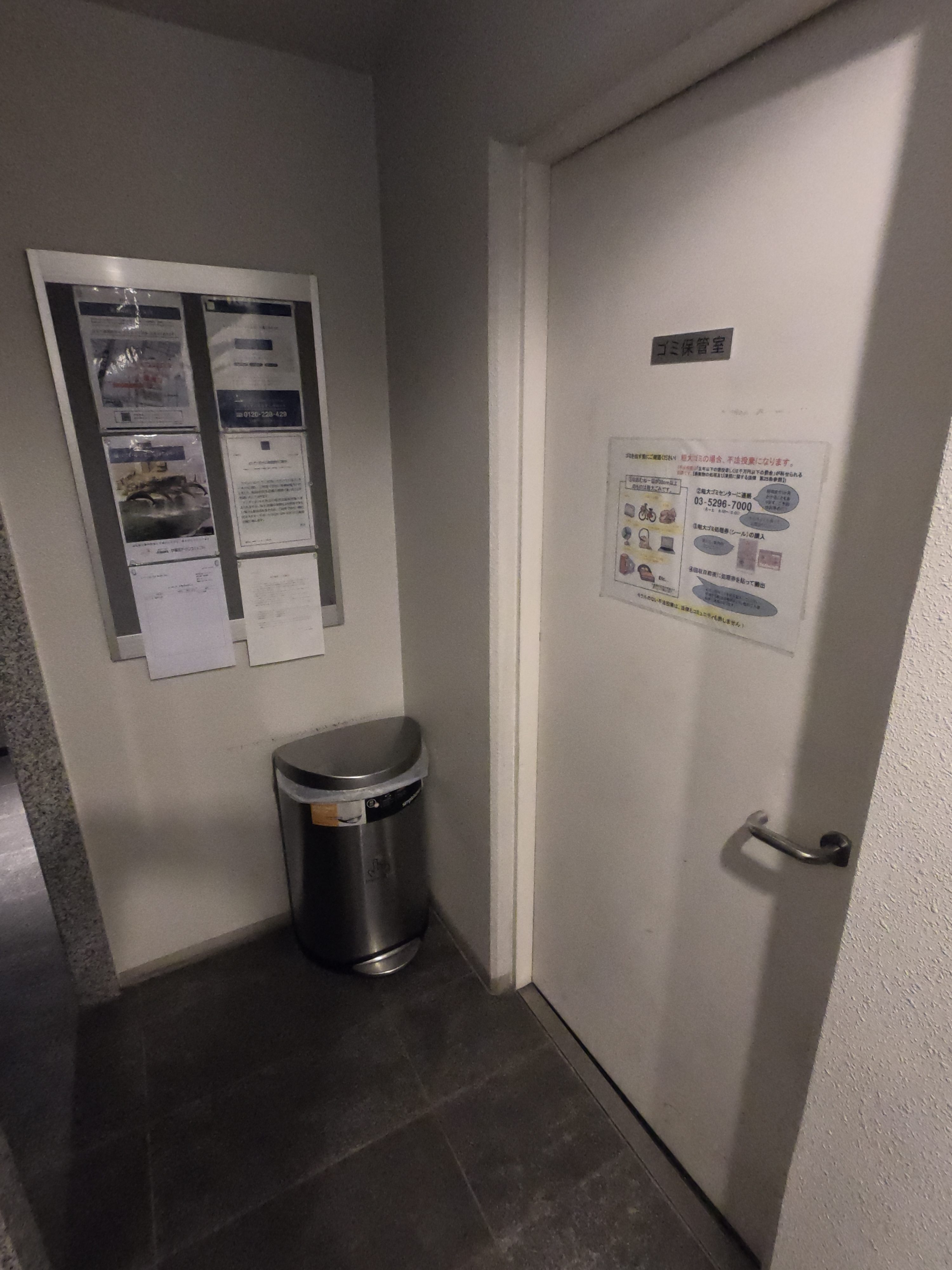 右に行くと郵便BOXと宅配ボックス、ゴミ集積場に行くことができます。