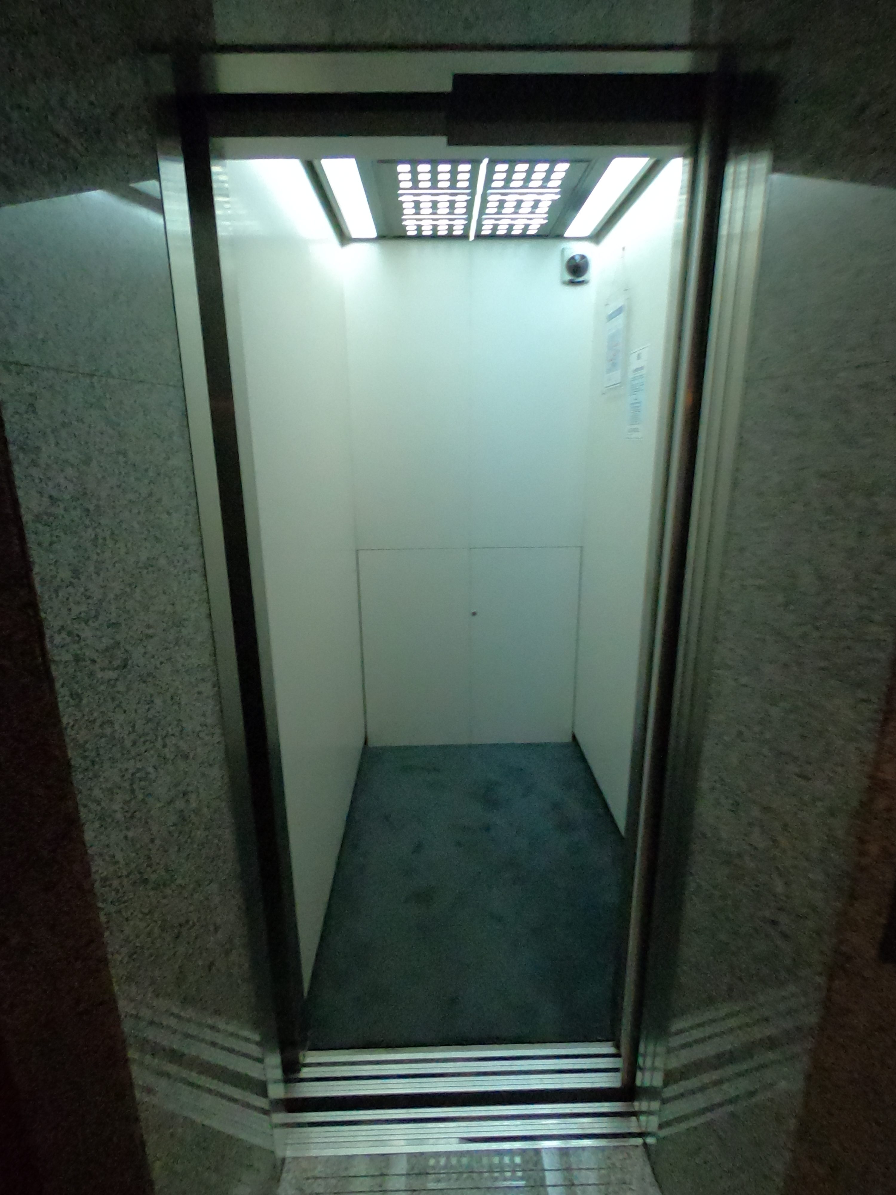 エレベーター内はあまり広くはなく、監視カメラが設置されています。