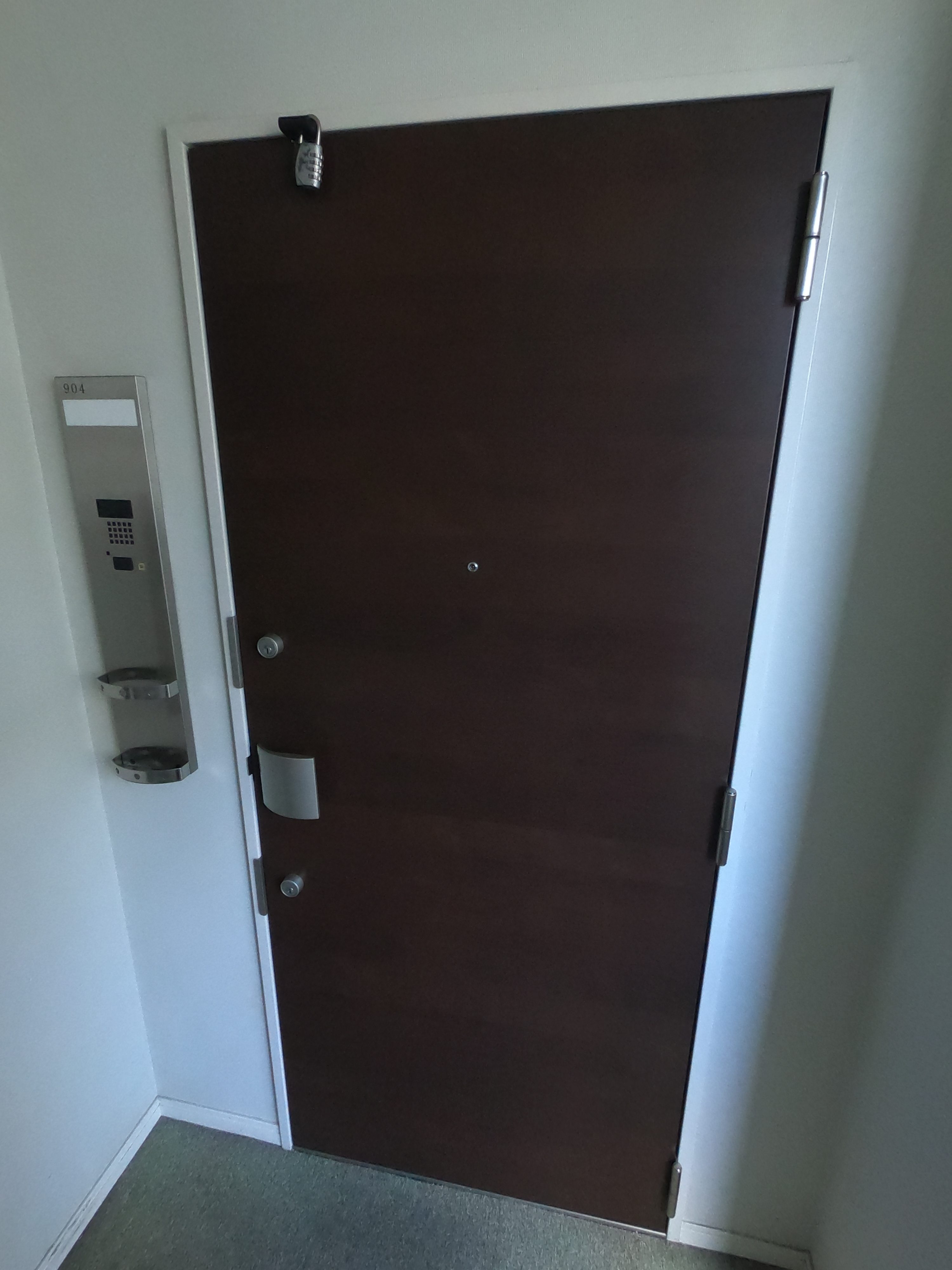 正面のエレベーターに対して右にトビラがありますが、実はこれが904号室のトビラです!