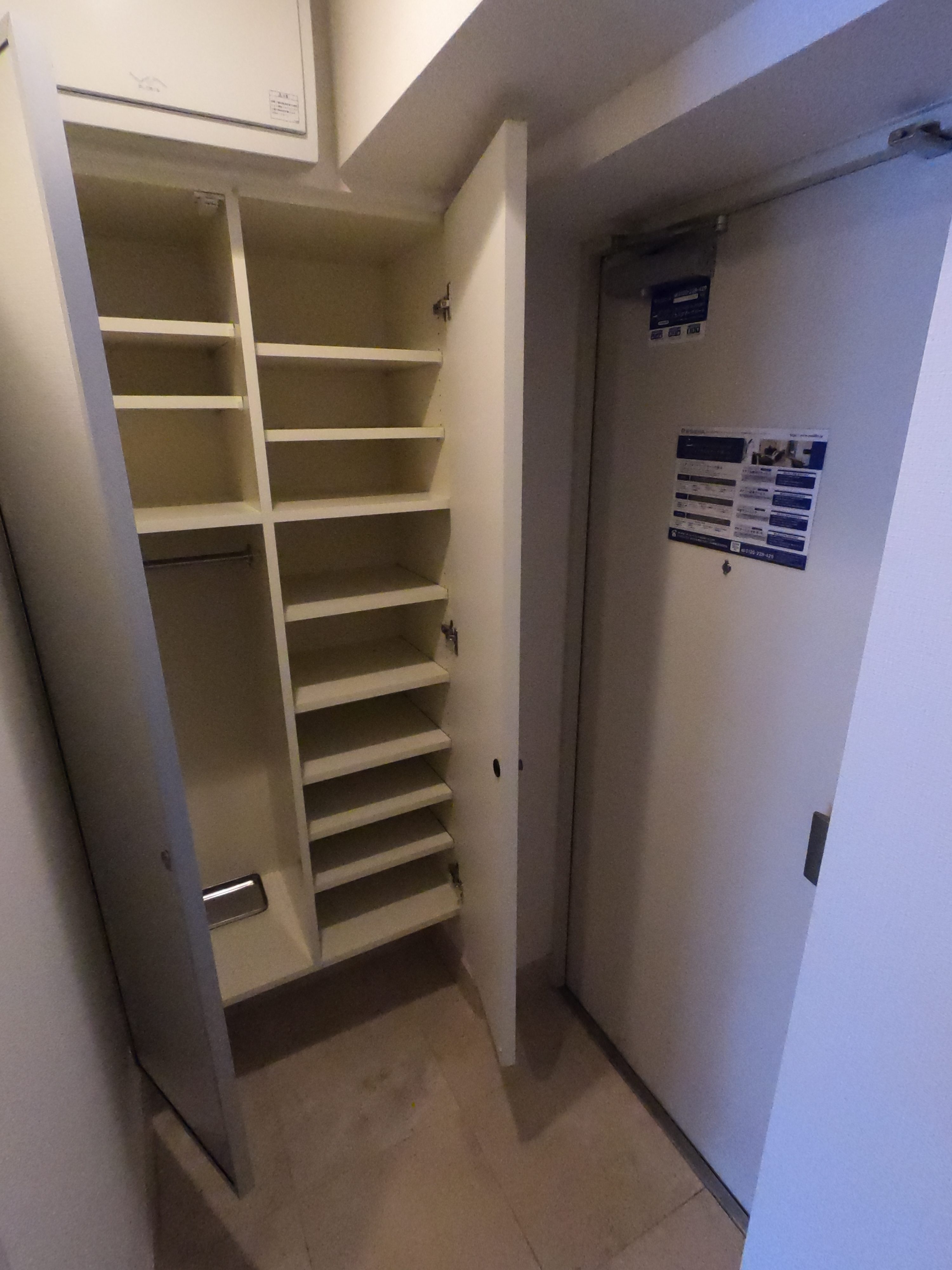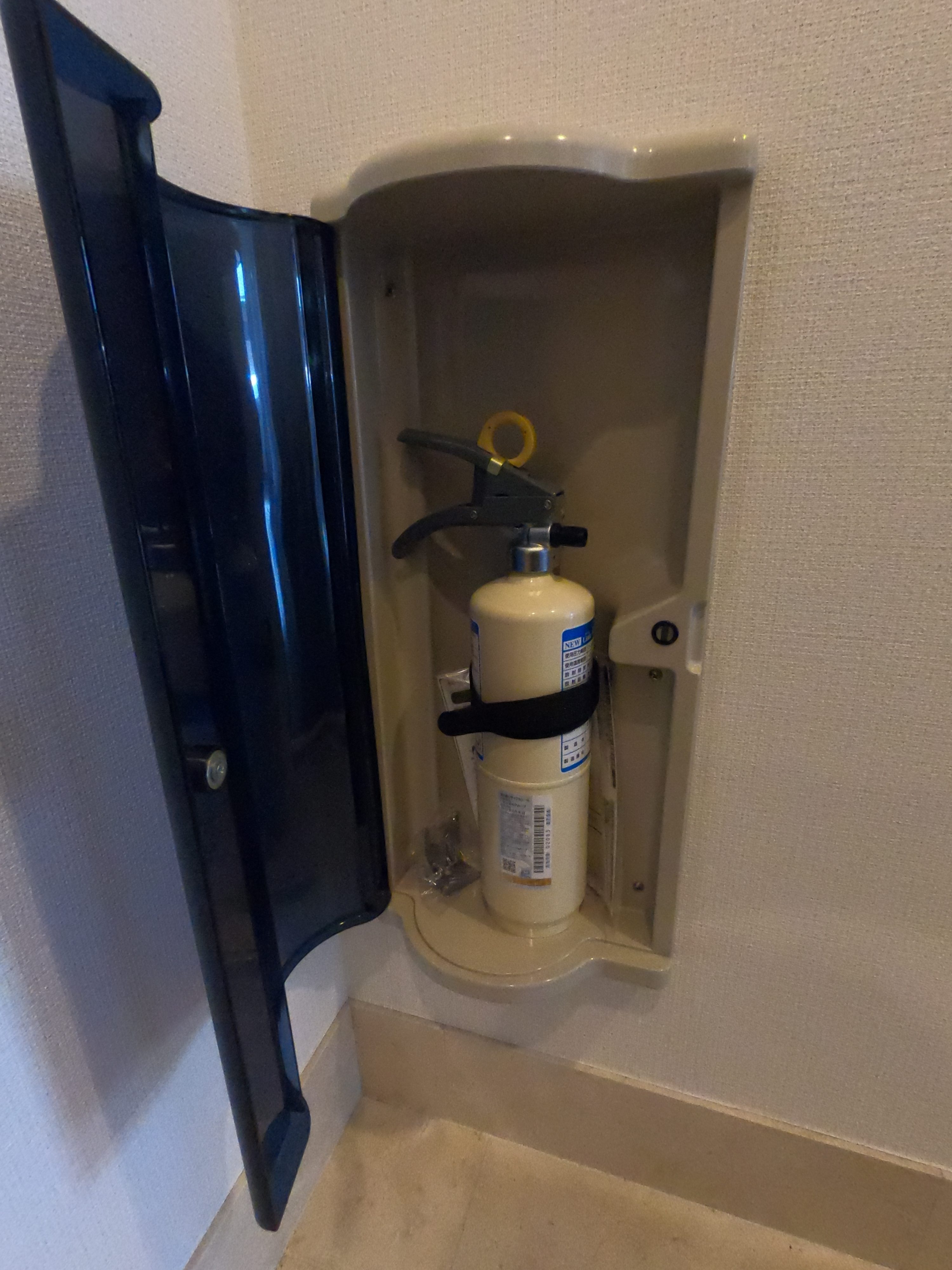 シュークローゼットの反対側の廊下の下部には消化器が備え付けられてます。