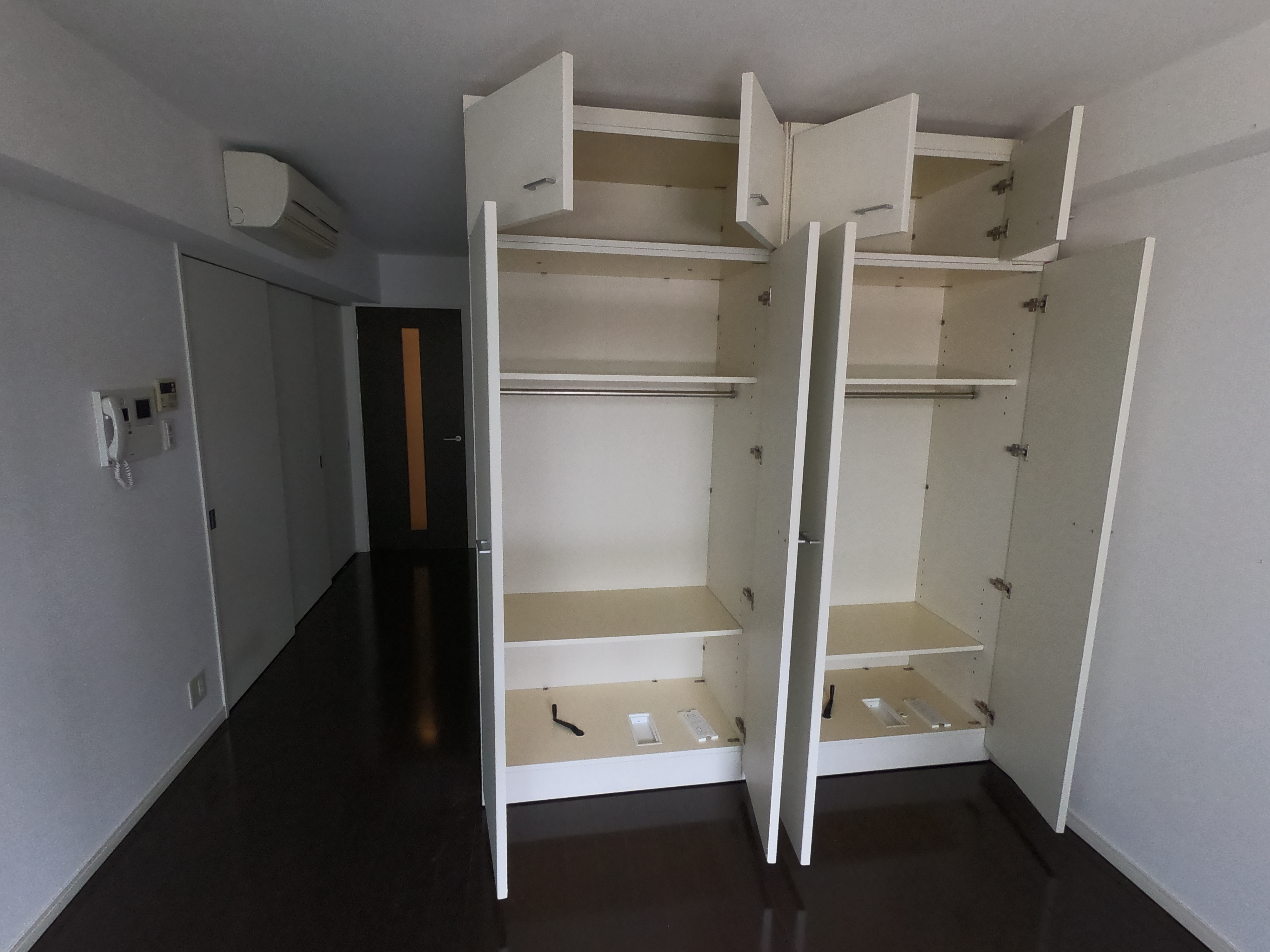 クローゼット内にあるハンドルを回すことでクローゼットが動きます。