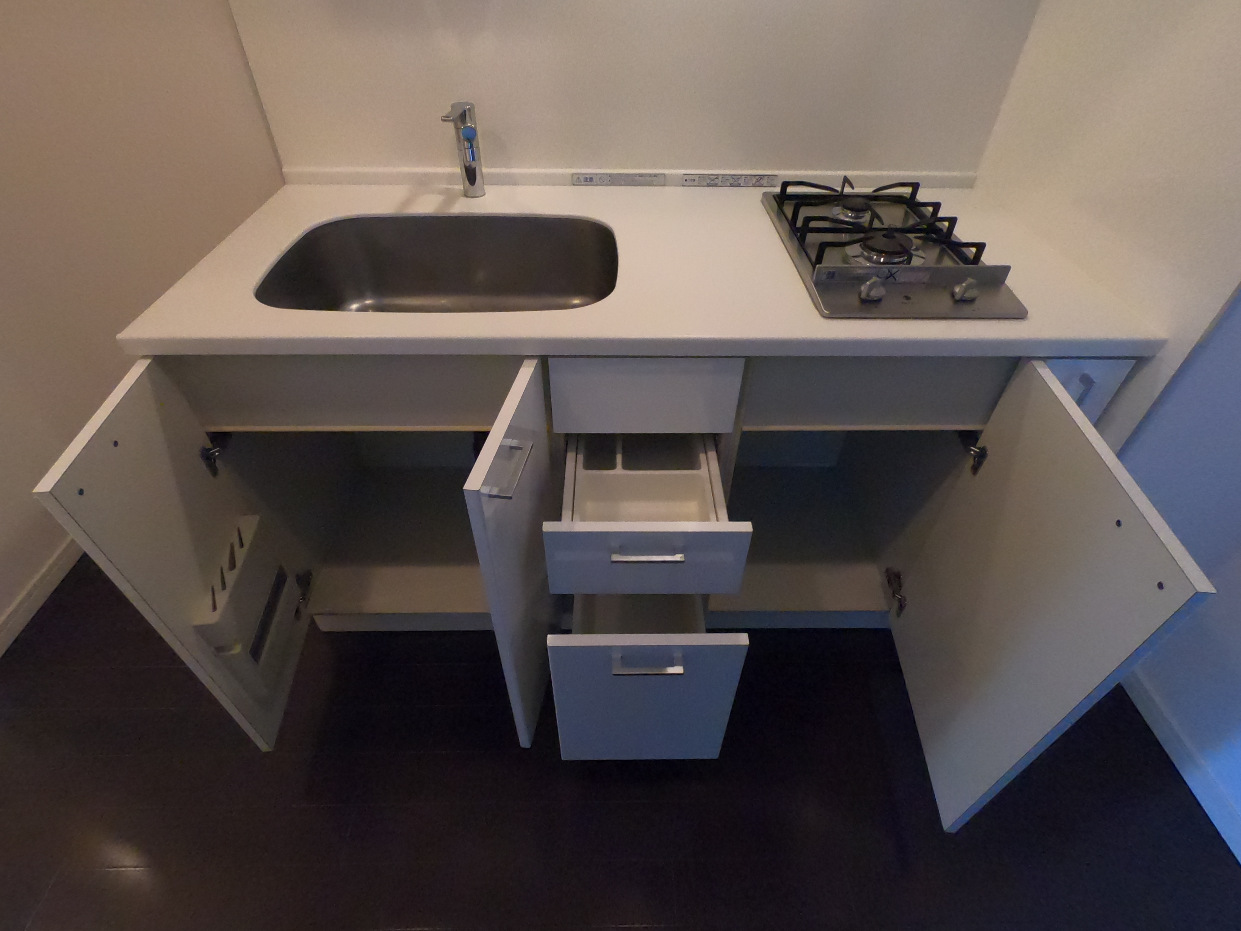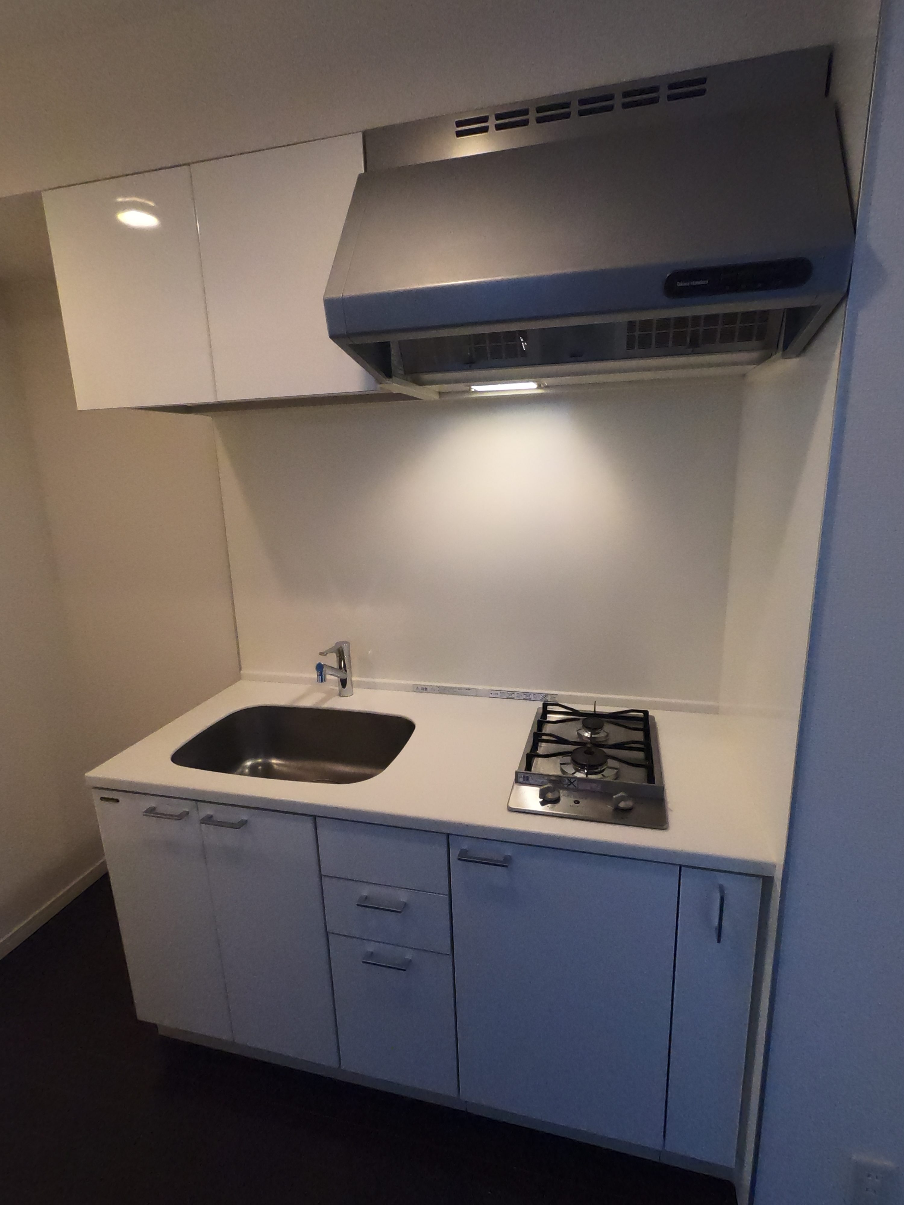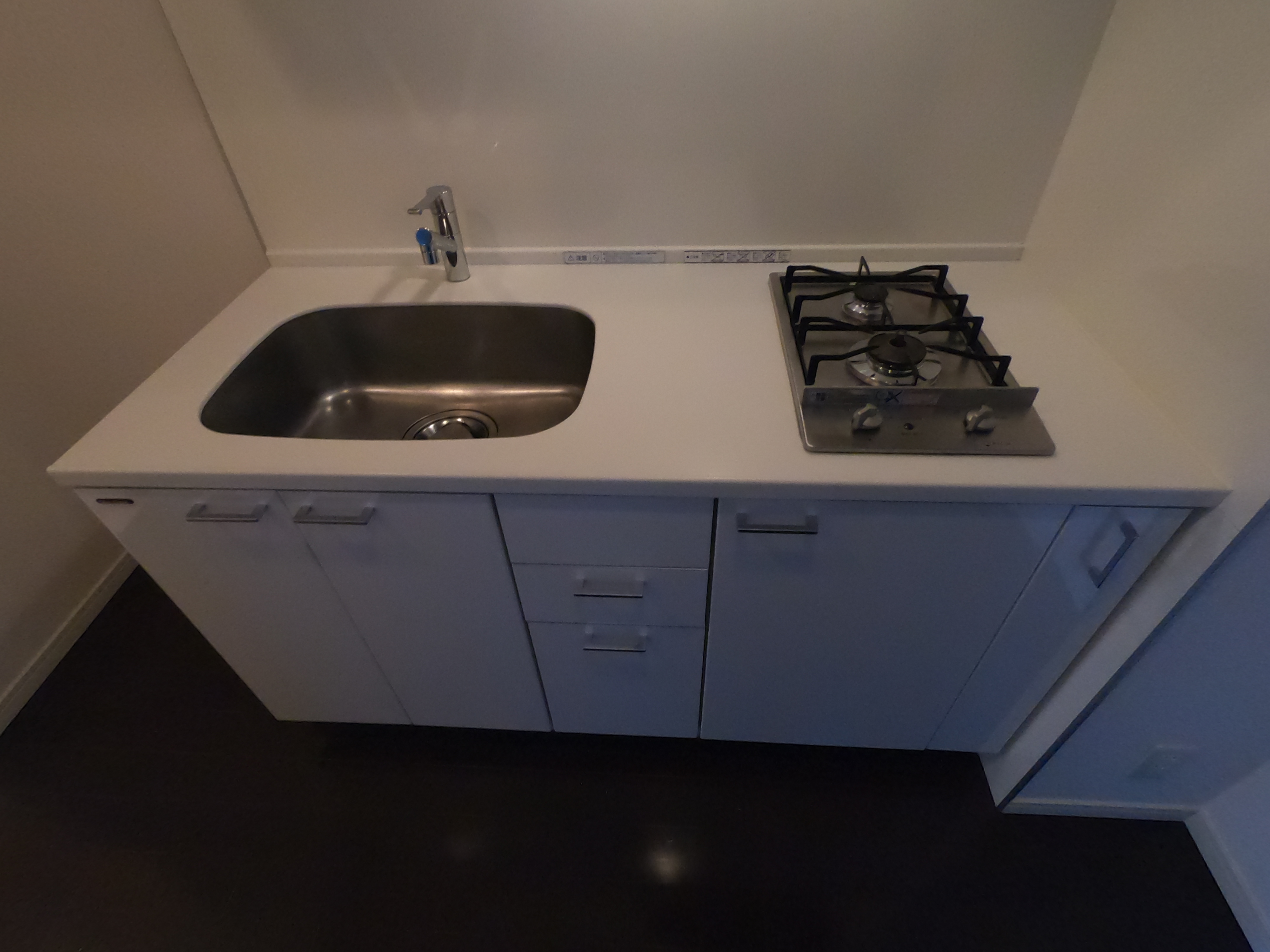 ガスコンロは縦に配置されていて、慣れてないとちょっと違和感があるかもしれません。